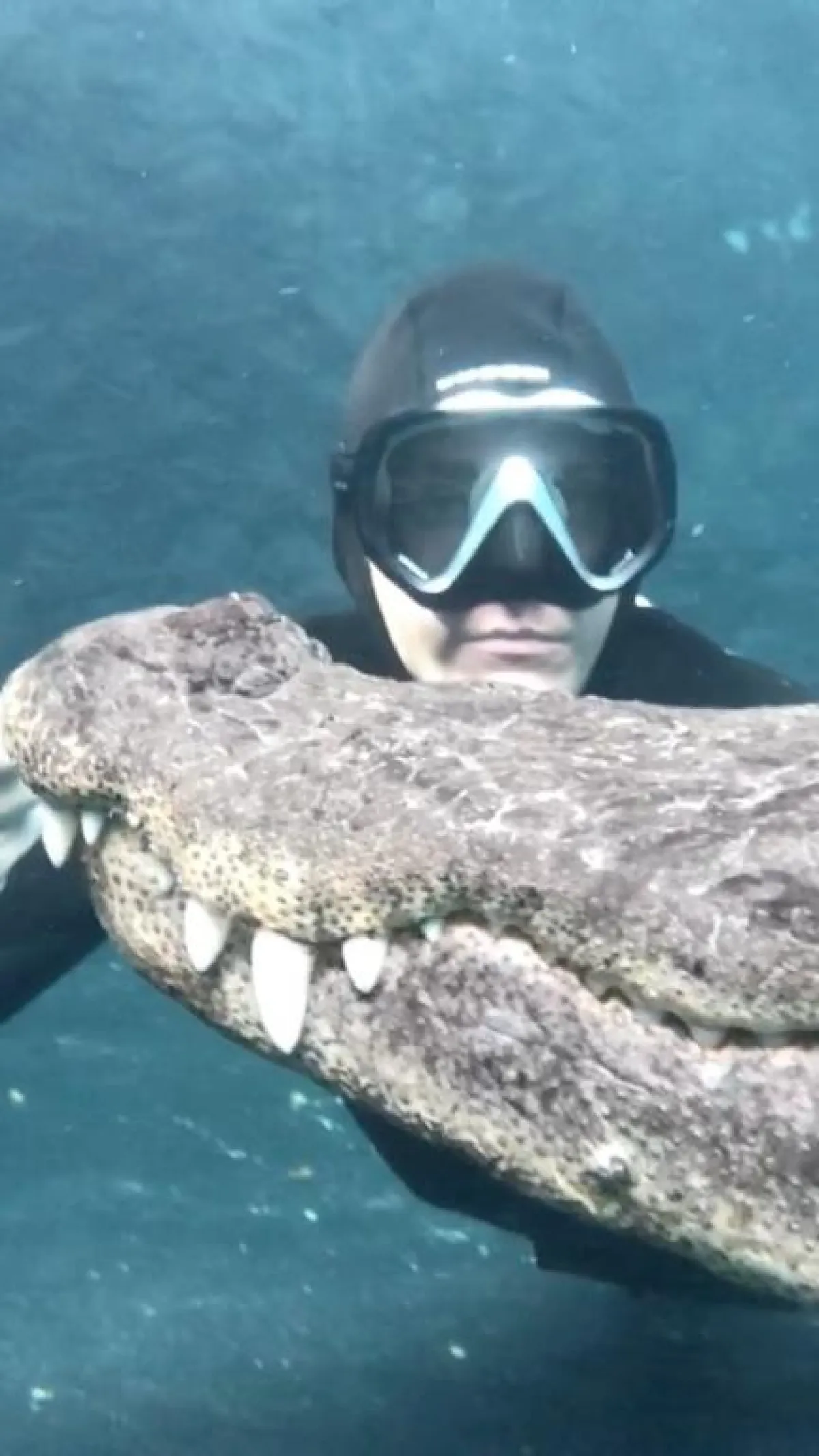 وبعد لحظات واجه الغواص التمساح وجهاً لوجه، كما لو كان يقبله، ومع ذلك حث كريستوفر المتابعين ألا يعيدو ما فعله في حال وجدوا تمساحاً.