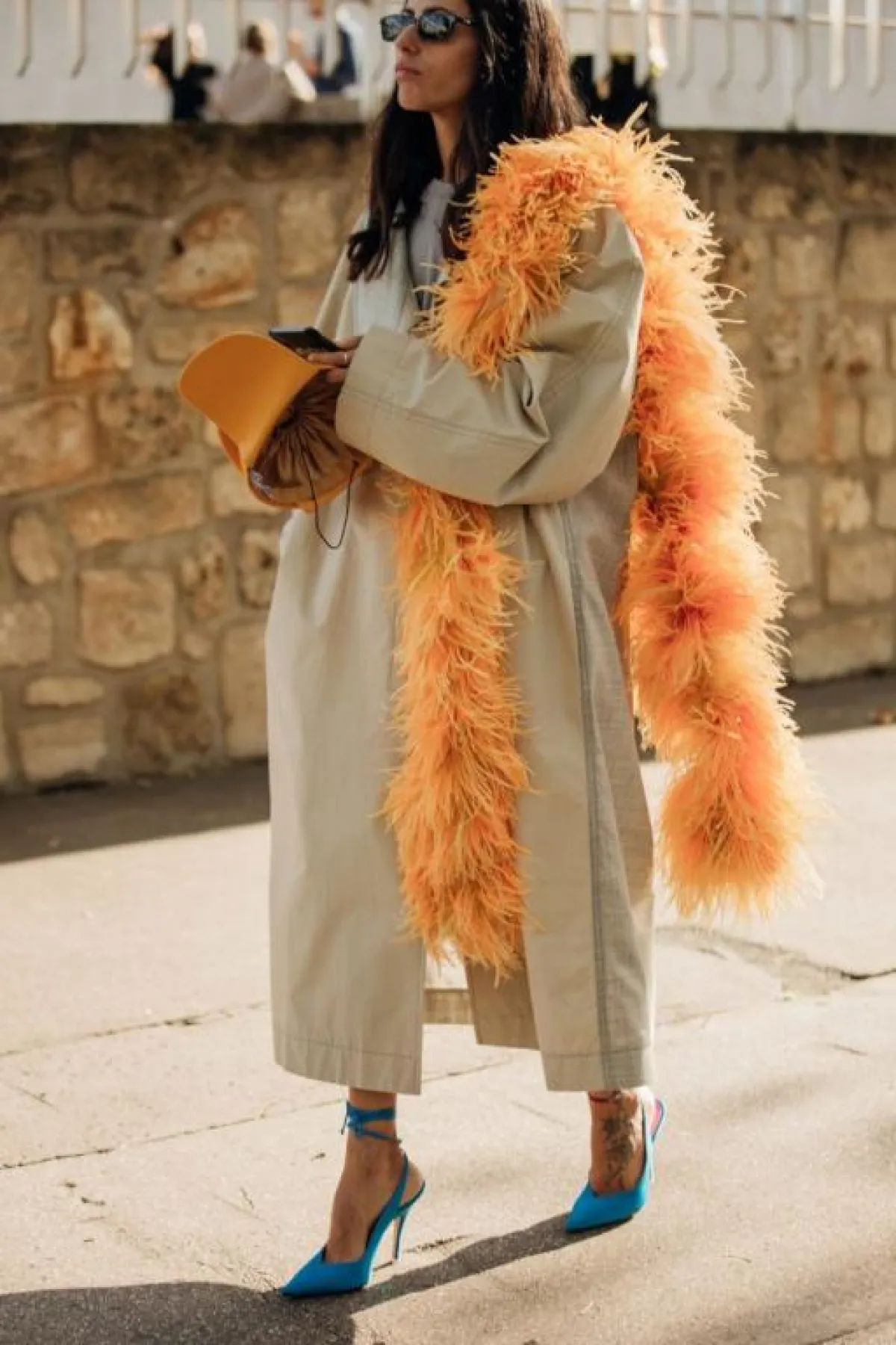 إذا كنتِ لا تجرؤين على اعتماد الريش من خلال أزياء صريحة، يمكنكِ الذهاب إلى الاكسسوارات مثل حقائب الريش أو الأوشحة الملونة بألوان زاهية تكسر كآبة الشتاء.