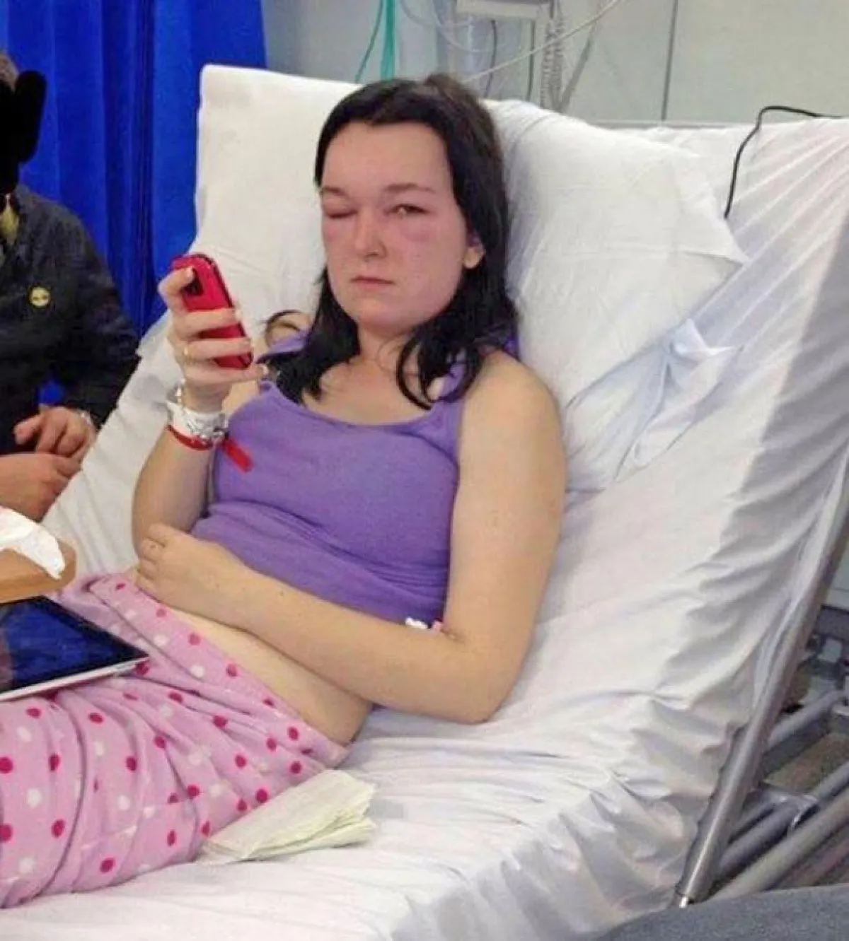 وعلى الرغم من خروجها من المستشفى، فإن وجهها ظل منتفخاً لمدة أربعة أسابيع، وظلت تأخذ المنشطات لمدة ثلاثة أشهر أخرى.