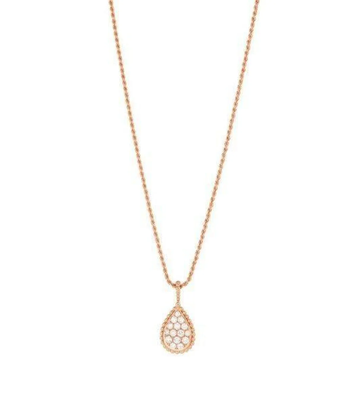 قدمت ماركة وشيرون Boucheron سلسلة ذهب وردي ناعمة بحلي مرصعة بالألماس بتصميم القطرة الرائج.