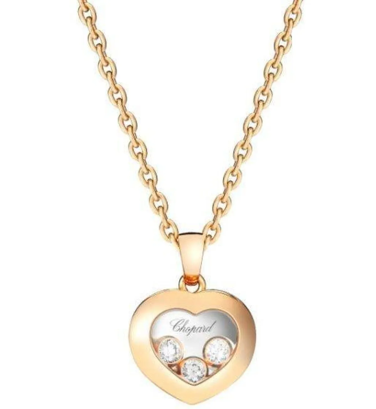 أيضاً قدمت ماركة شوبارد Chopard سلسلة ذهب وردي مع تعليقة القلب المرصعة بالألماس من تشكيلة Happy Hearts.