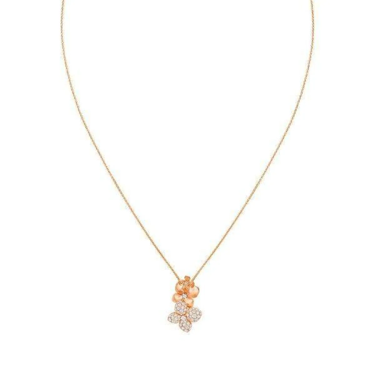 بوحي من الطبيعة حيث لمسات الورود الناعمة، قدمت ماركة شوميه Chaumet سلسلة ذهب وردي مرصعة بفصوص الألماس البرّاقة.