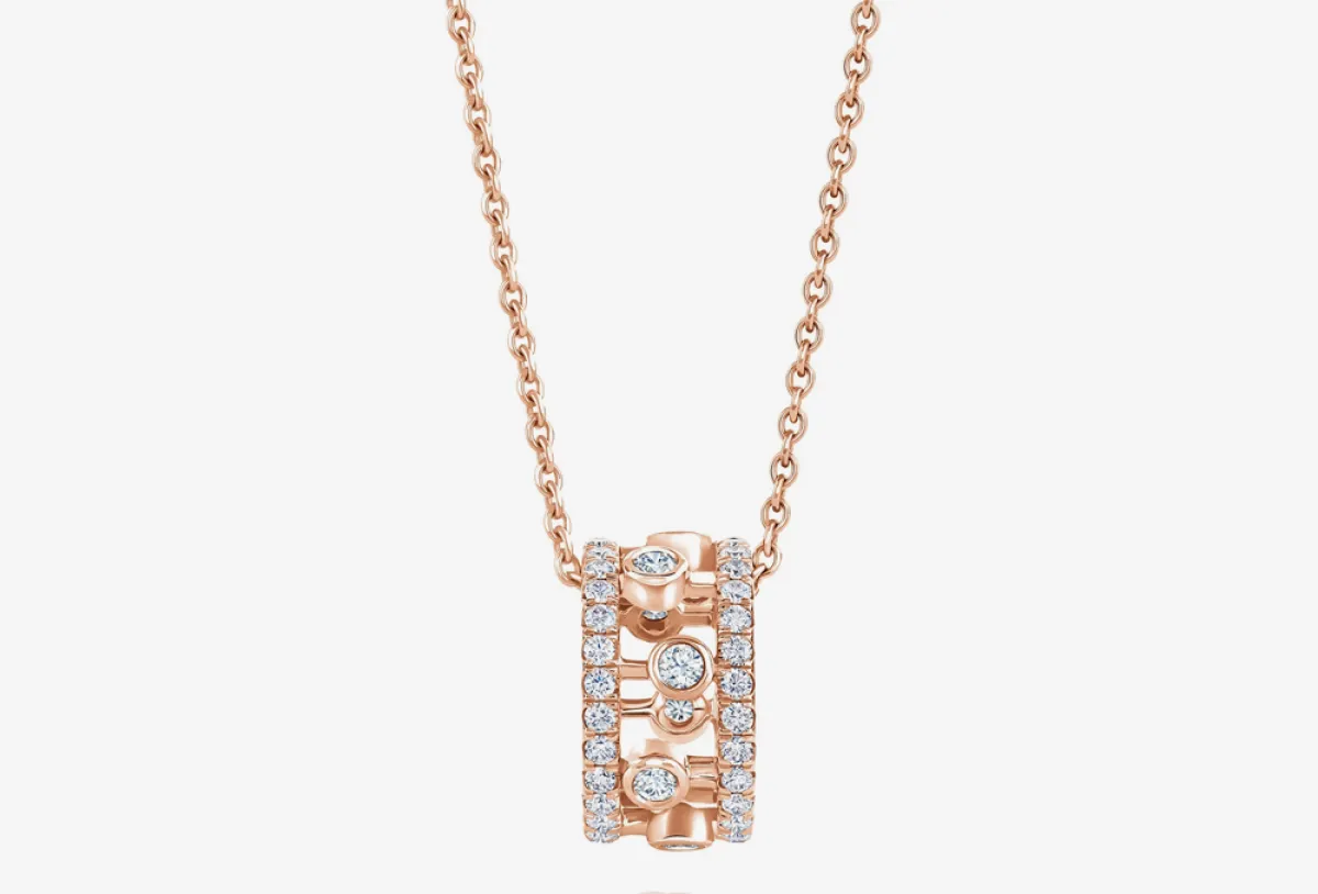 اخترنا لكِ تصميمين من السلاسل الذهب الوردي من توقيع ماركة دي بيرز De Beers، وتميزت التعليقات بالعصرية مع لمسات الألماس.