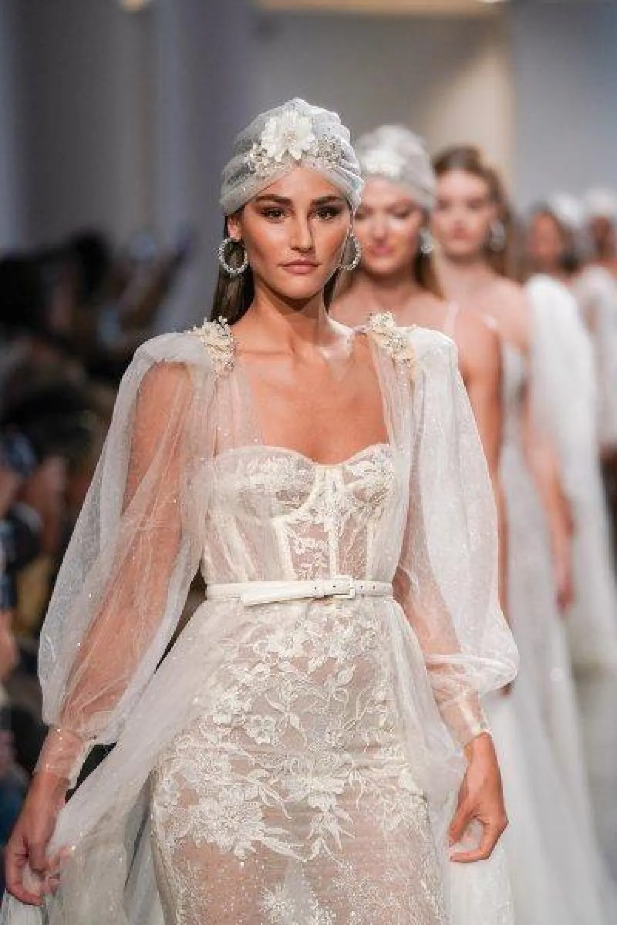 أيضاً برزت فساتين الزفاف بالأحزمة متوسطة السُمك والعريضة، لتبرز القوام الممشوق للعروس، مثل أحزمة بانينا تورناي Pnina Tornia وأحزمة جولي فينو Julie Vino