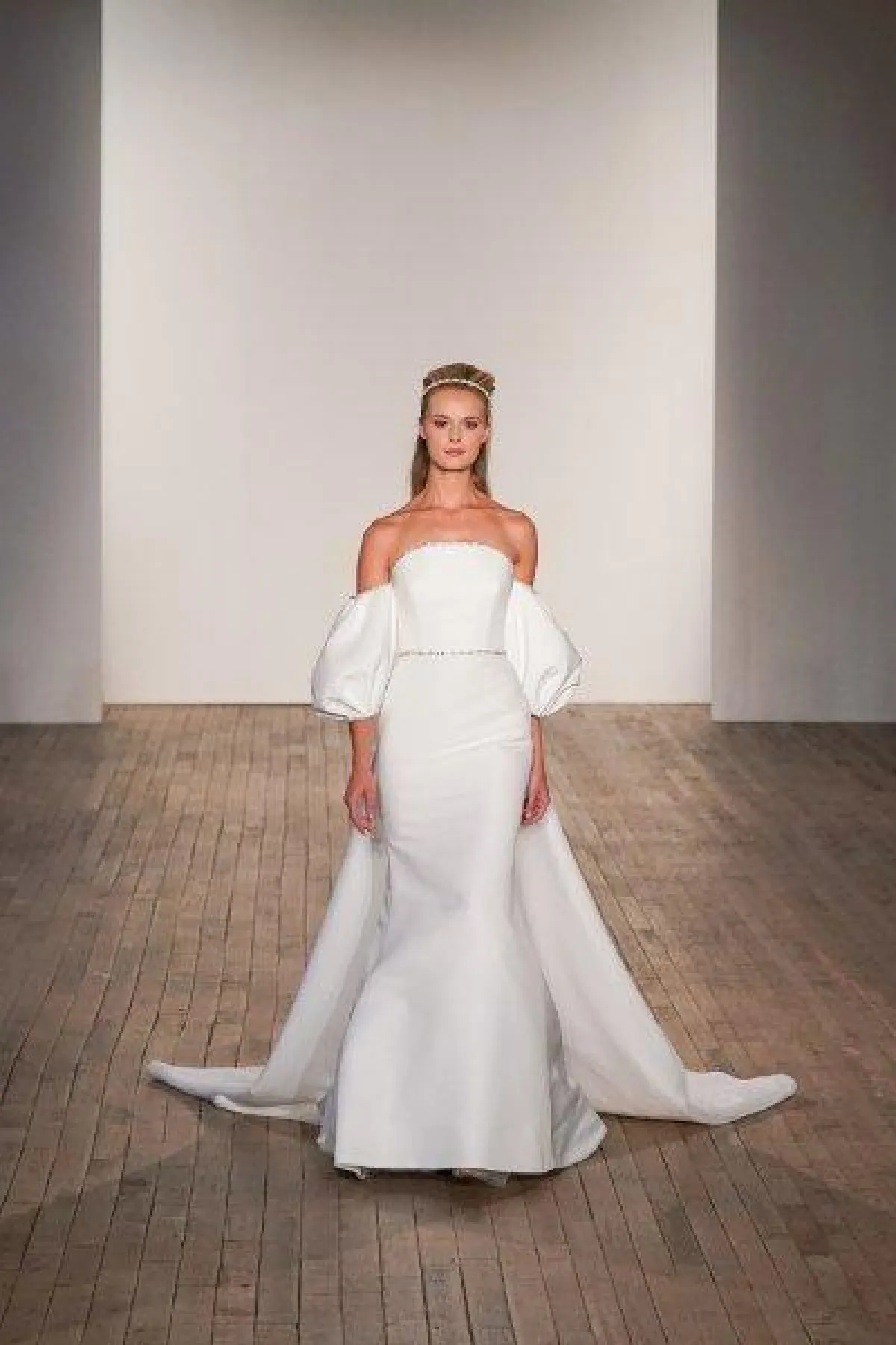قدمت بعض الماركات فساتين زفاف بحزام أبيض رفيع مثل فساتين زفاف بيرتا Berta وفساتين زفاف جولي فينو Julie Vino.