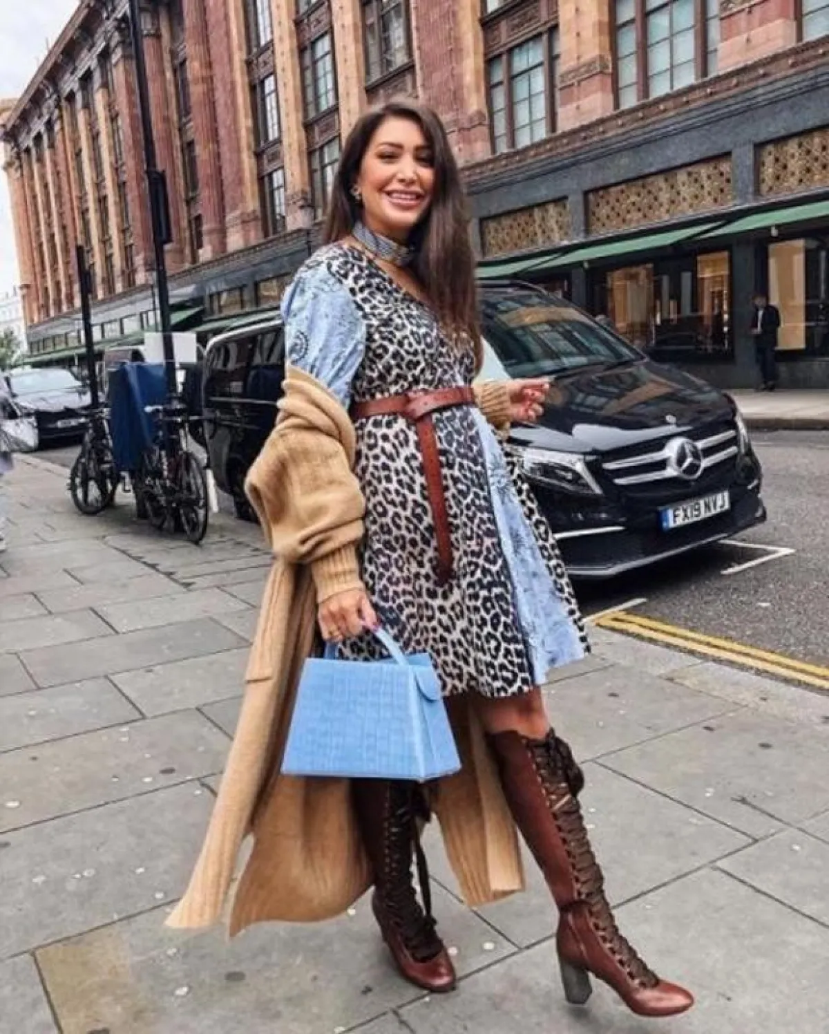 نسقي فستان بطبعة الفهد مع بوت طويل وجاكيت جينز طويل واستمتعي بلوك مثالي، اتجهي إلى تنسيق فستان منقوش مع جاكيت جلد واحصلي على لوك جذاب.