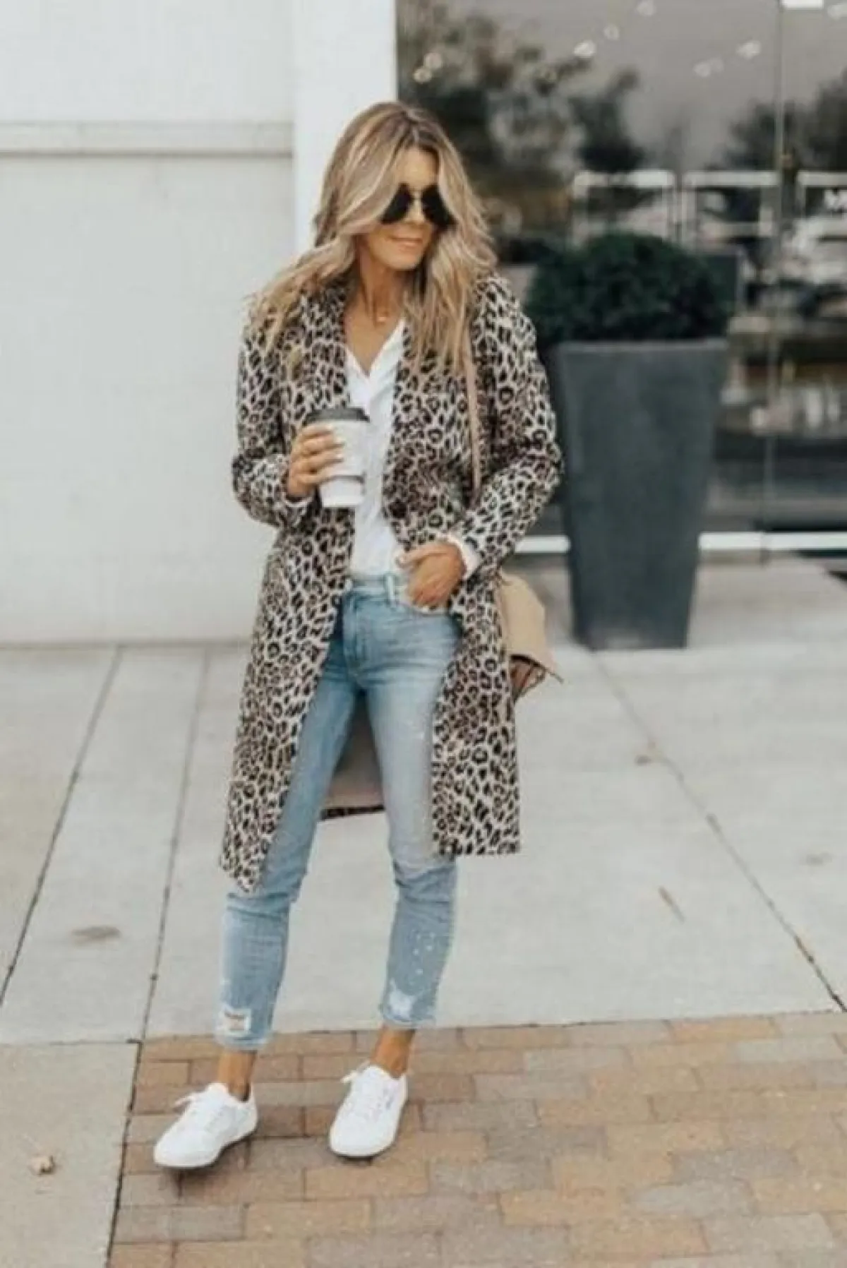 نسقي تنورة مستقيمة بطبعة الفهد مع بلوفر باللون البيج ومعطف طويل باللون البيج، أو اتجهي إلى ارتداء بنطلون بنقشة الفهد مع بلوفر أسود على سبيل المثال.