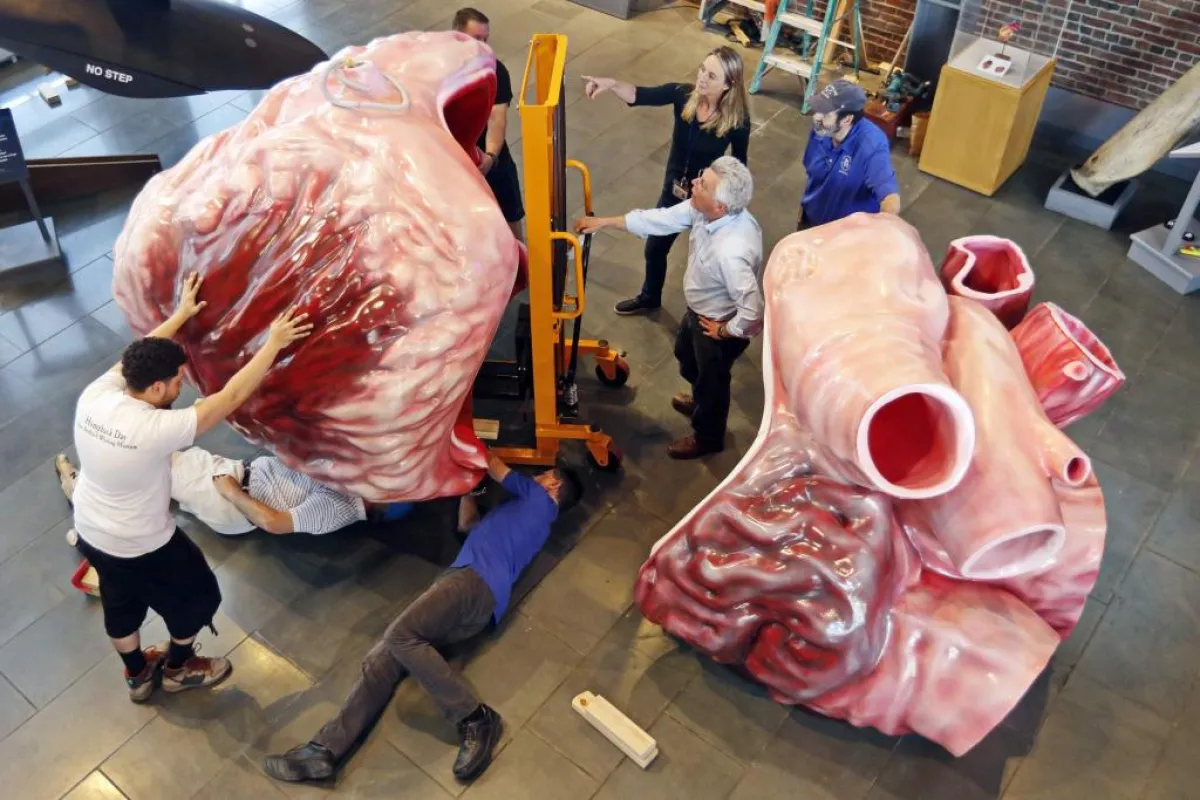 ولأن السرّ الأهم في الحيتان الزرقاء هو قلوبها، فمن المثير معرفة أن وزن قلب الحوت الأزرق يصل إلى أكثر من 600 كيلوغرام، وهو أكبر قلب معروف حتى الآن. أما شريانه الأورطي الصدري، فيصل طول قطره لقرابة 23 سنتمتراً. وقد يصل وزن لسان الحوت الأزرق إلى قرابة الـ3 أطنان أحياناً. وعندما يفتح هذا العملاق فمه كاملاً، يتسع لما يزيد عن الـ 90 طناً من الغذاء والماء.