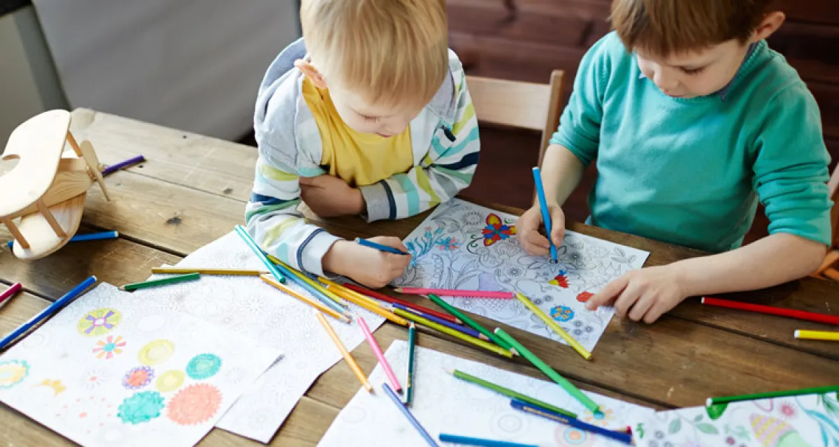 احصلي على كتب التلوين، أو قدمي لطفلك بعض الأوراق الملونة مع الرسوم التوضيحية بالأبيض والأسود، واطلبي منه تلوينها بالأقلام الملونة.