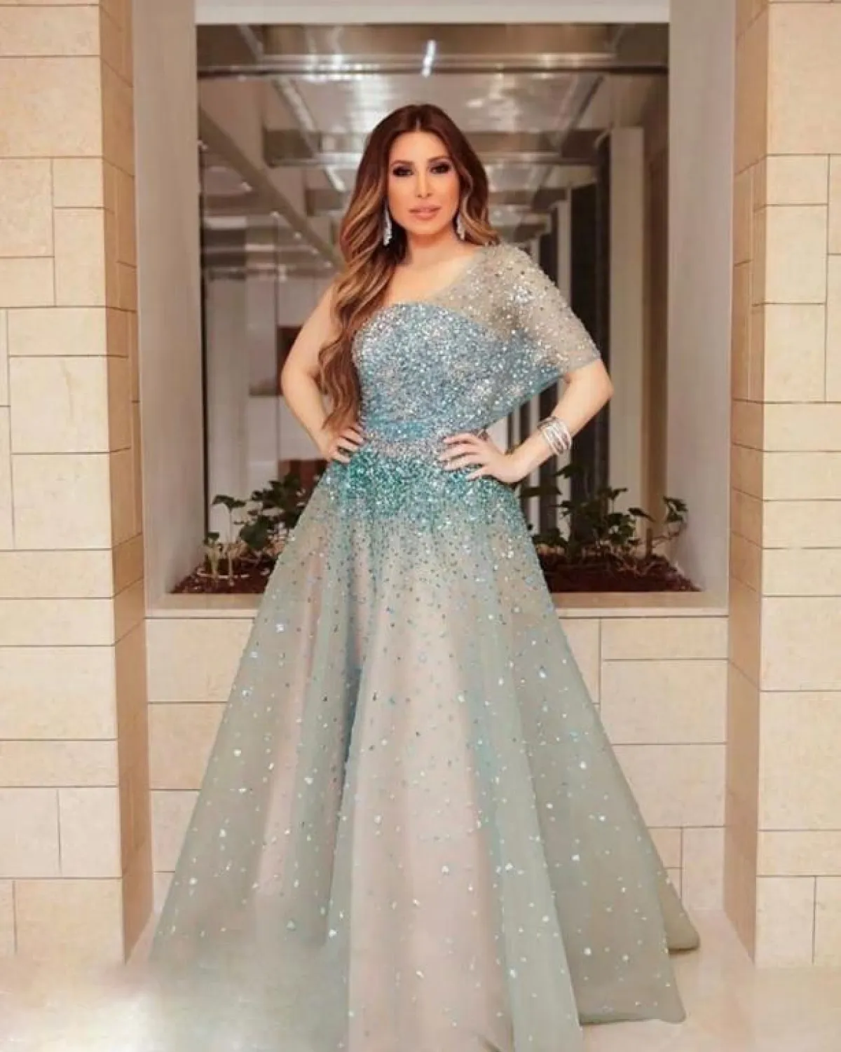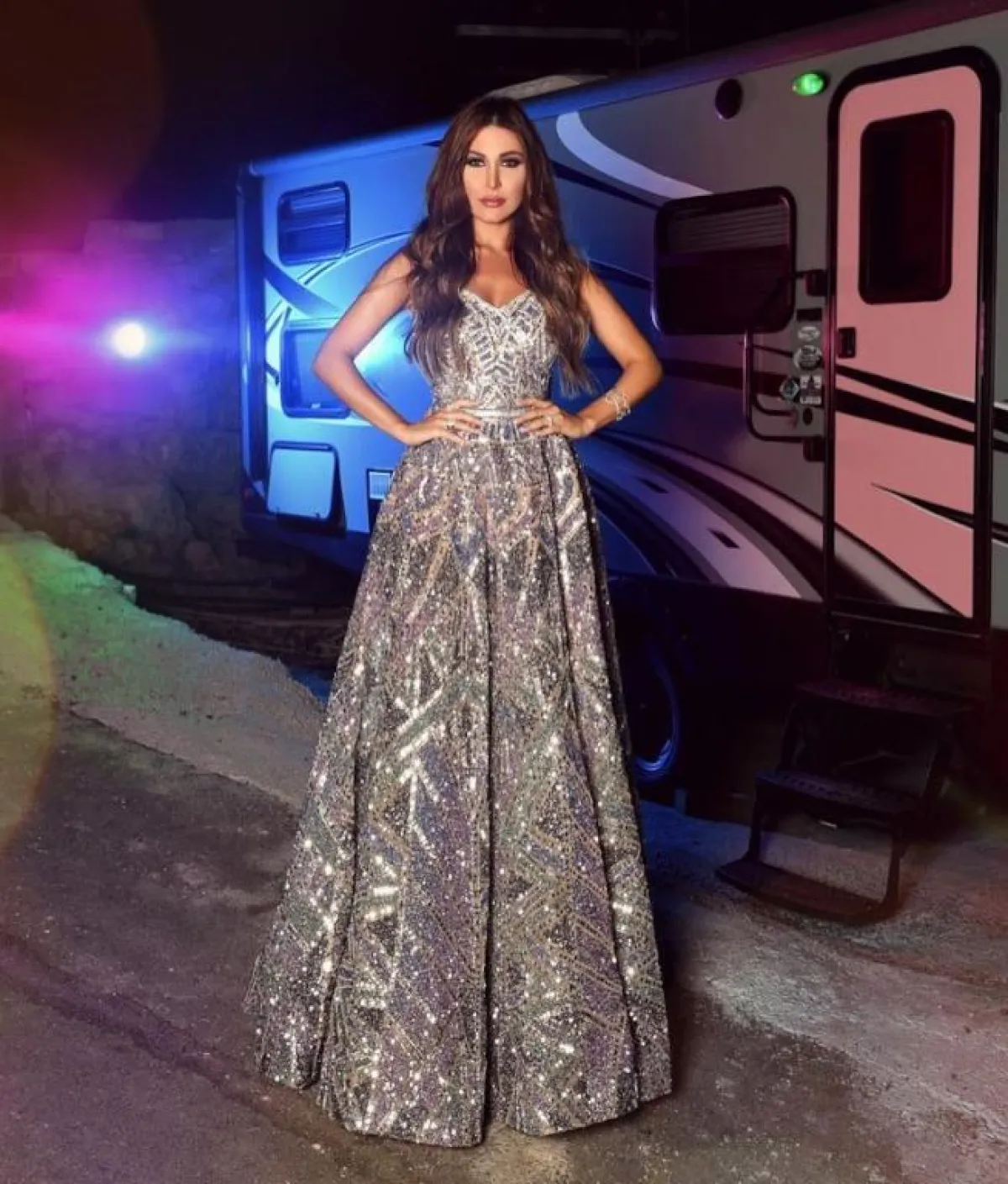 اطلالة لافتة لـ يارا في فستان من الترتر البراق: