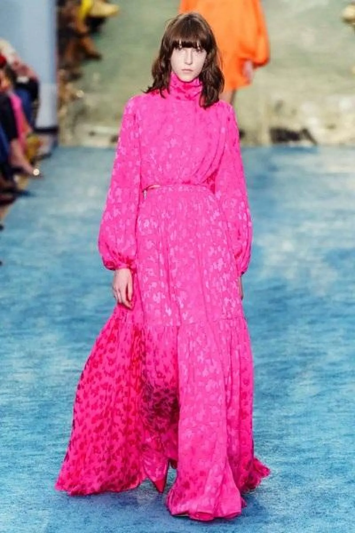وقد رصدنا الفساتين المحتشمة الواسعة لشتاء 2020 على منصات الكثير من الدور العالمية، أبرزها كان بالنسياغا Balenciaga بألوان سادة مفعمة بالحيوية والفرح، مثل الأزرق التركوازي والفوشيا، وكذلك لدى علامة مارك جايكوبس Marc Jacobs باللون الأخضر المتلألئ.