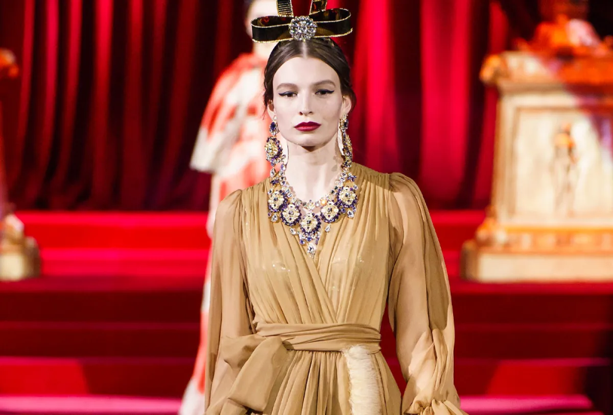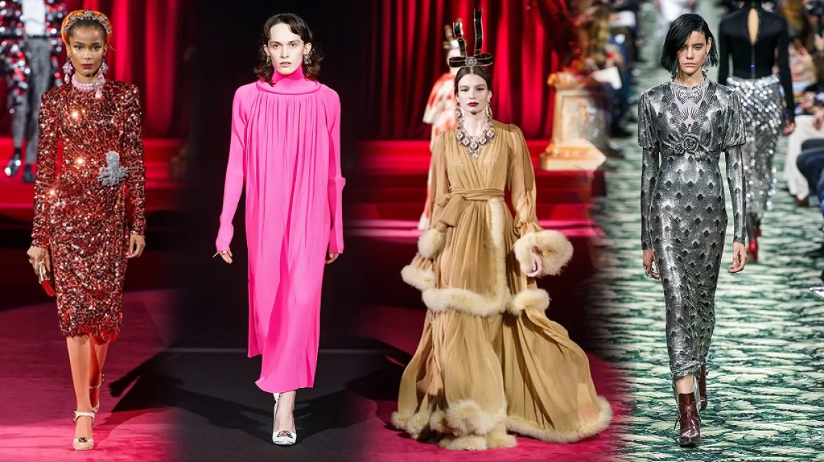 ولعاشقات الإطلالة الأرستقراطية الفاخرة والكلاسيكية، لفتتنا الكثير من التصاميم المميزة من فساتين السهرة المحتشمة؛ خلال عرض الدار الإيطالية دولتشي آند غابانا Dolce& Gabbana لهذا الموسم الاحتفالي، فظهرت العارضات بفساتين ذات أقمشة راقية مثل الساتان والمخمل، وتفاصيل فاخرة مثل الفرو والدانتيل المفعم بالأنوثة، كما كان للترتر حيزٌ بارزٌ ضمن تصاميم السهرة لشتاء 2020.
