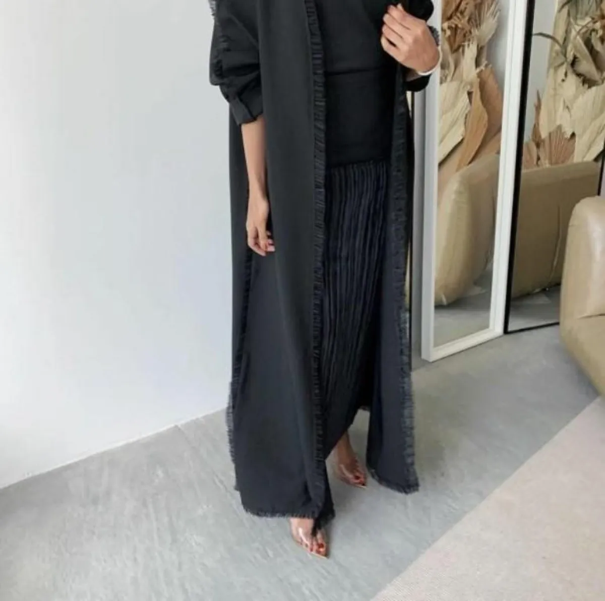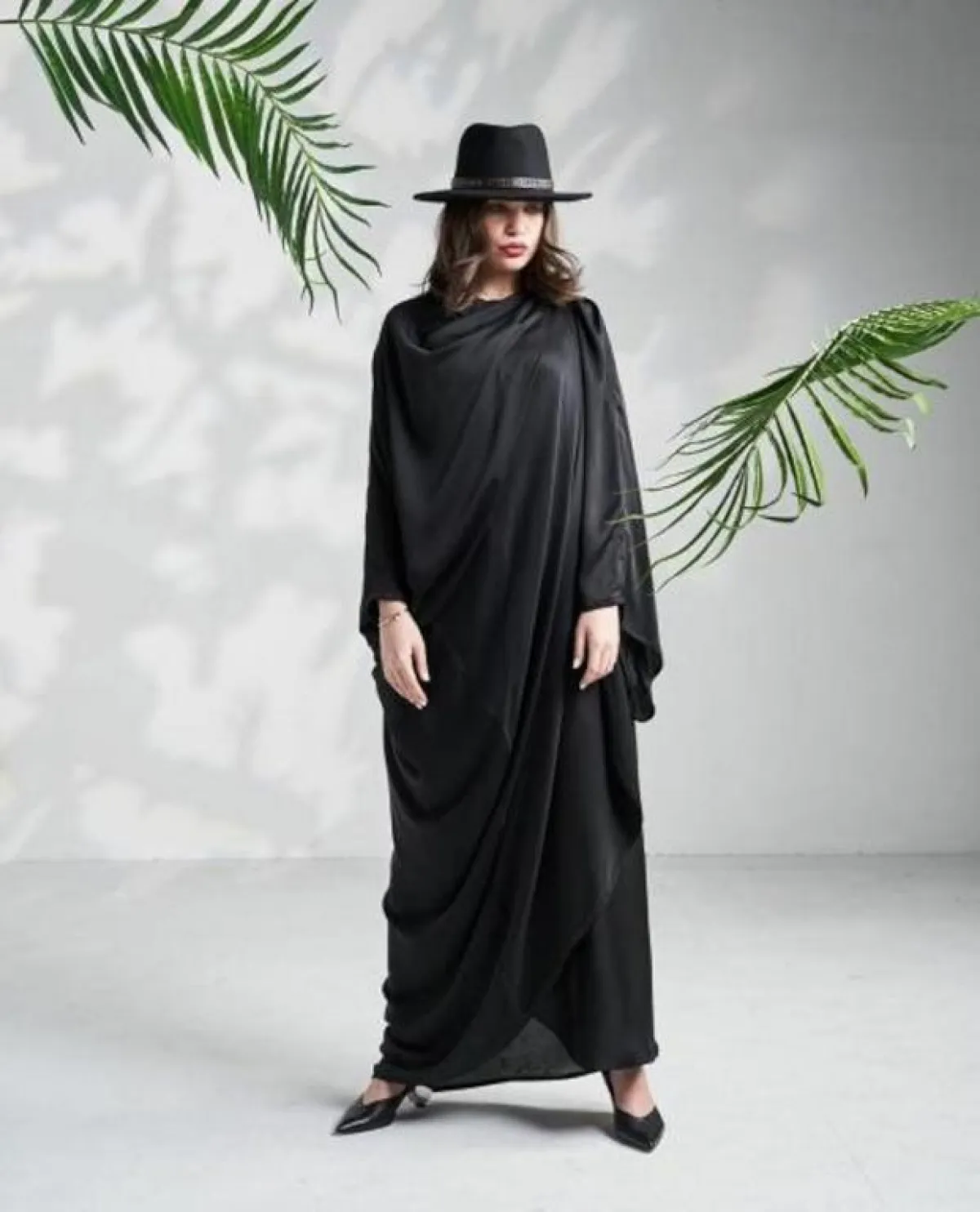 لا تزال العبايات السوداء الواسعة بموديل البترفلاي الشهير مستحوذه على مجموعات أشهر المصممين، ابتكرت ماركة آدور بوتيك Adore Boutique تصميم أنيق خالي من التطريز يناسب اطلالات النهار ونرشحه لصاحبات القوام الكنز ليمنحهن مدى أعرض للجسم.