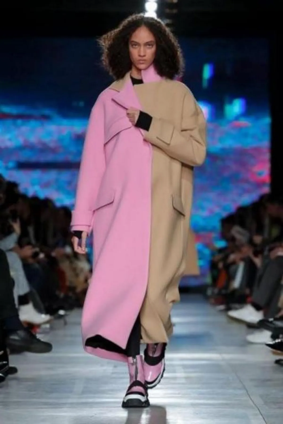 برزت هذا العام صيحة الأزياء المصممة بجانبين غير متماثلين كما في مجموعة ماركة MSGM التي قدمت معطف Oversized مصمم بجانب وردي والآخر باللون الجملي الكلاسيكي، اعتمدي هذا الستايل فقط اذا كنتِ نحيفة الجسم.