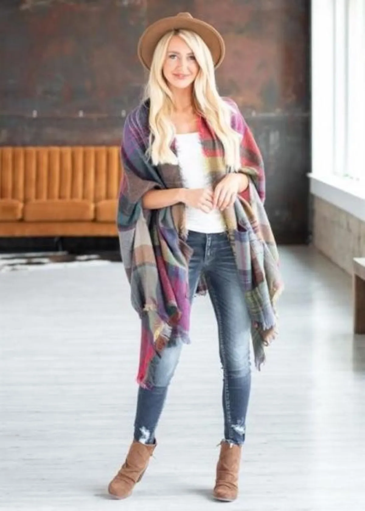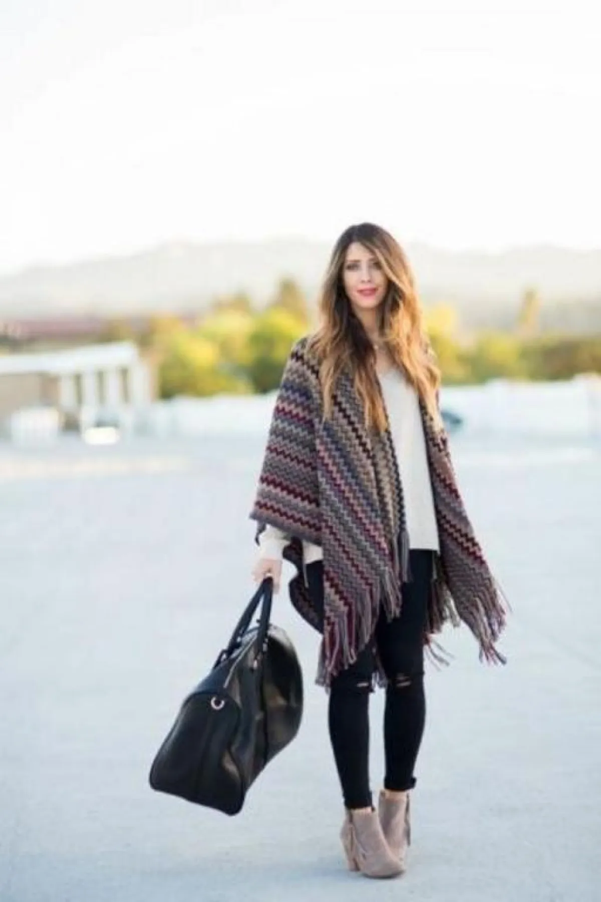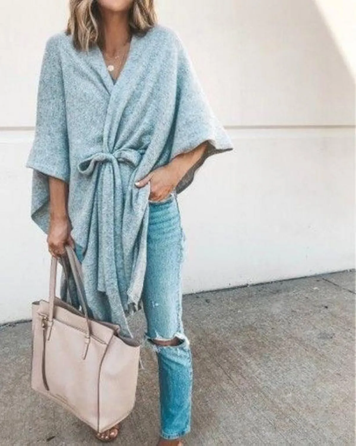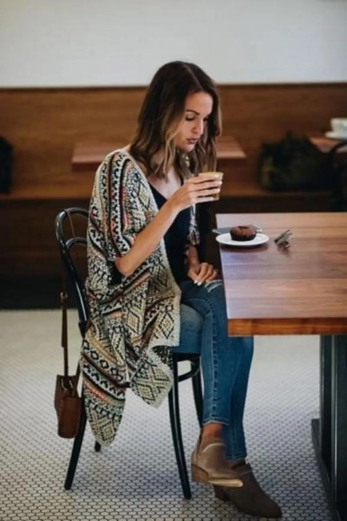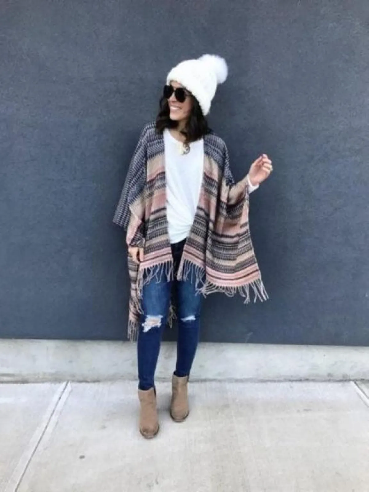 كيف تنسقين كيمونو شتوي بستايل عصري، أسهل طريقة لتنسيق كيمونو شتوي تتمثل في البنطلون الجينز والحذاء الرياضي.