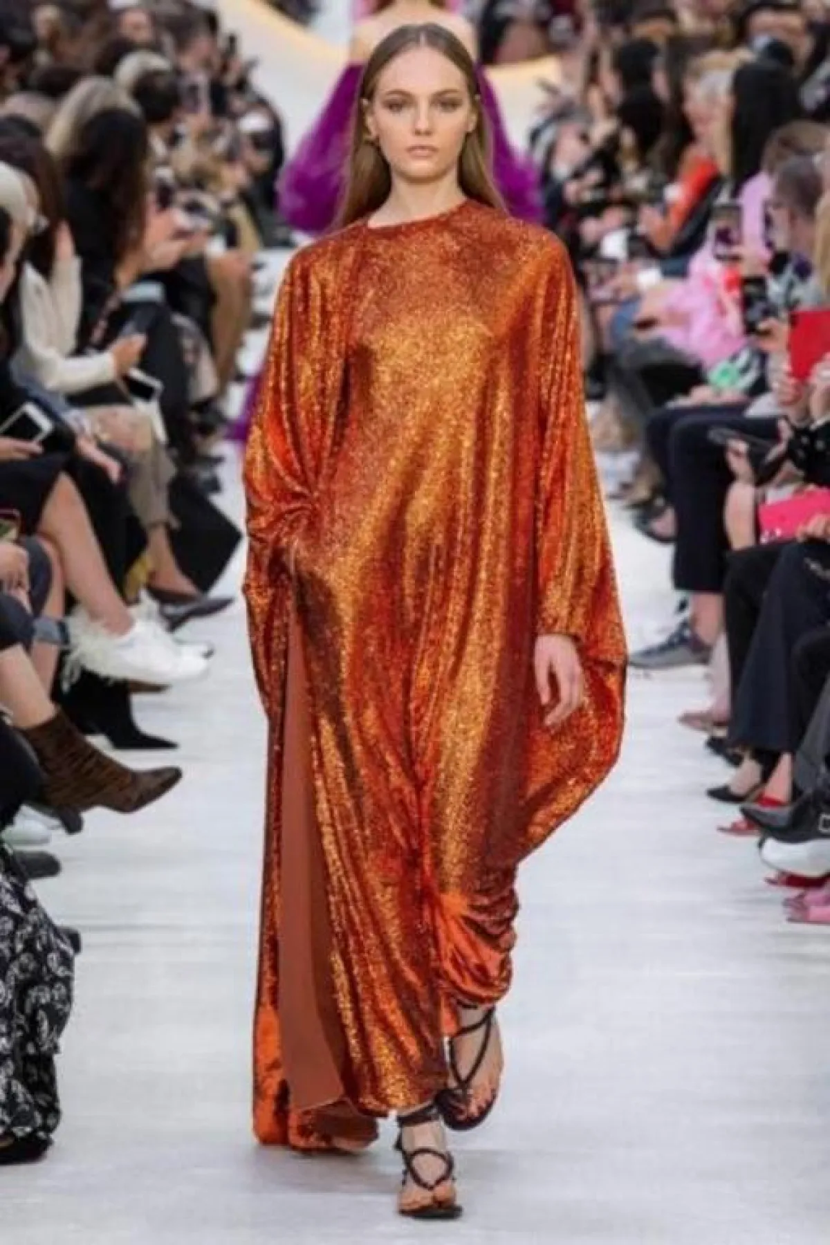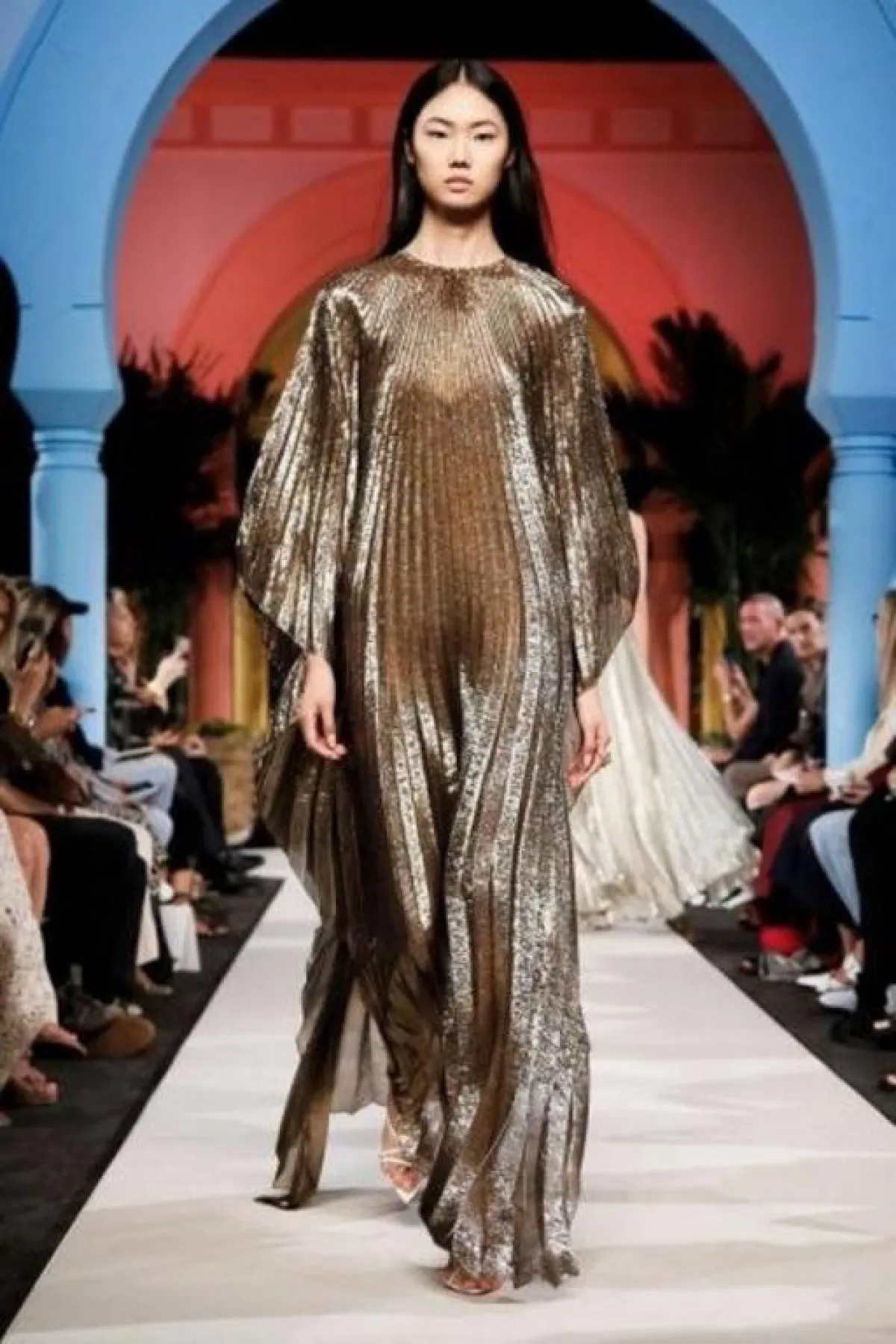 اذا كنتِ ترغبين في اطلالة محتشمة بطابع شرقي مميز فليس هناك أنسب من الفساتين المصممة بستايل القفاطين الواسعة التي قدمتها ماركات أوسكار دي لا رنتا Oscar de La Renta وفالنتينو Valentino وهى وسيلتك لإخفاء جميع عيوب الجسم.