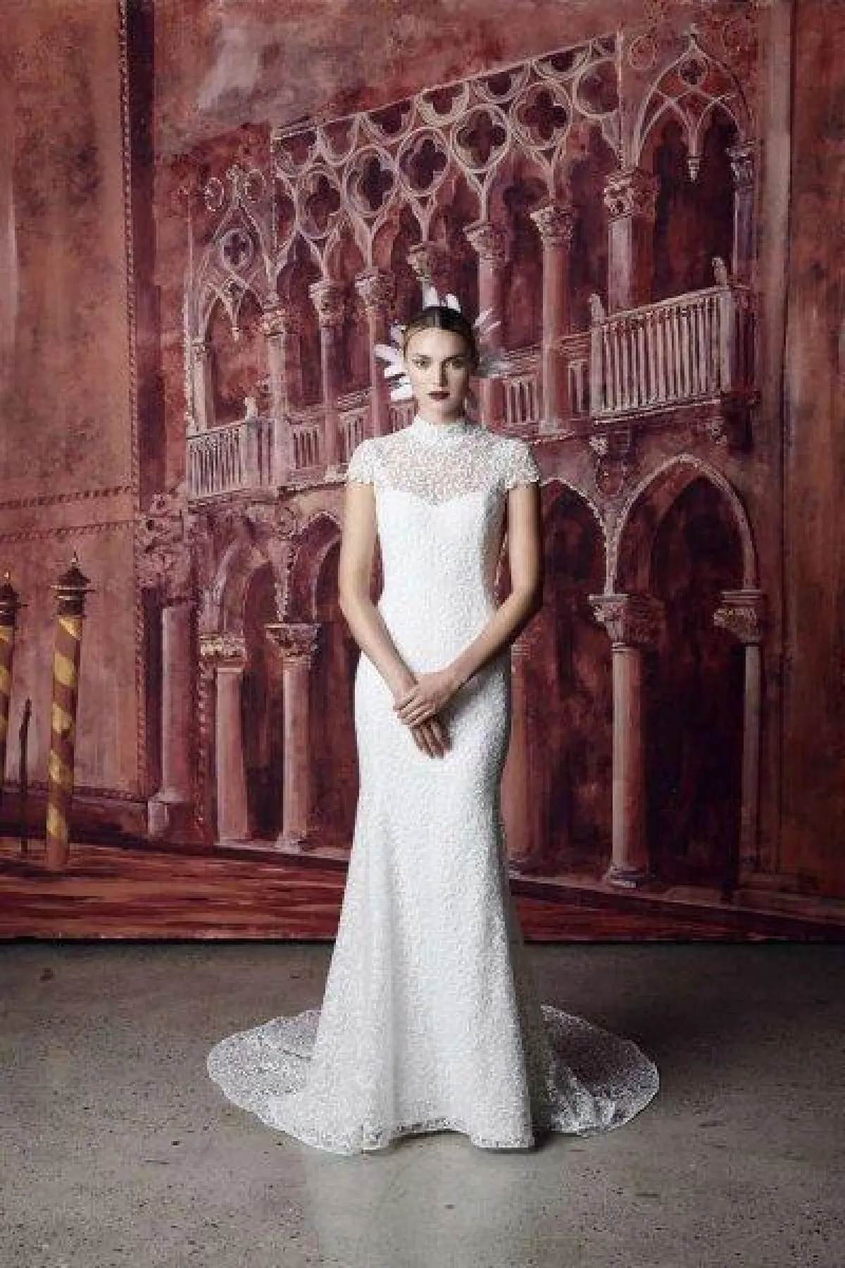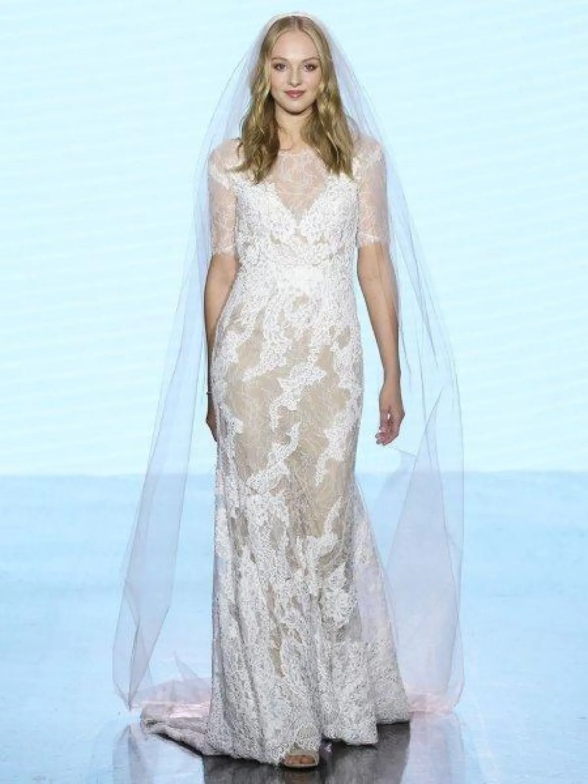 كما قدمت ماركة سارا نوري Sareh Nouri فستان زفاف بأكمام قصيرة جداً من الدانتيل لإطلالة رومانسية حالمة.