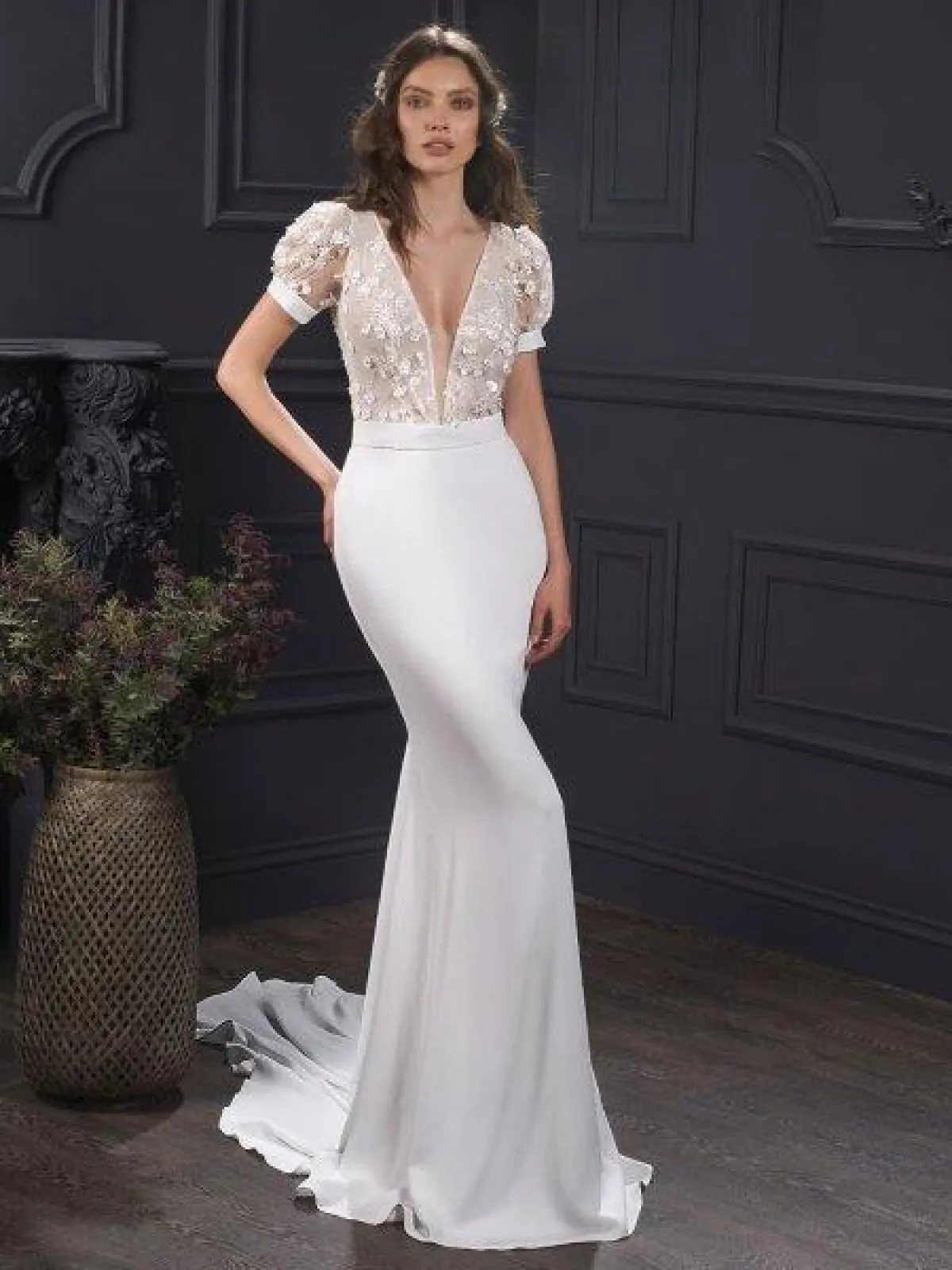 اختاري تصميم مميز من أجمل فساتين زفاف بأكمام قصيرة 2020 من توقيع أشهر الماركات العالمية.