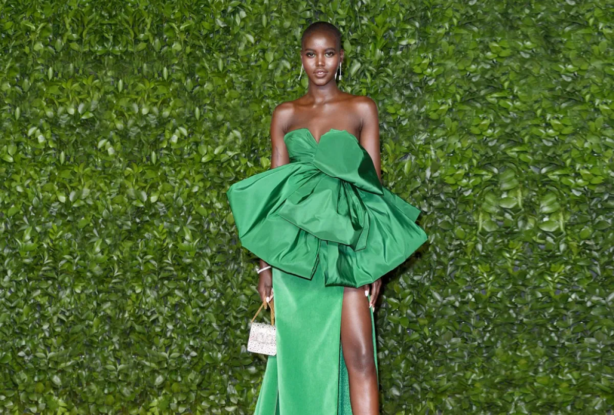 فازت هذا الأسبوع عارضة الأزياء الأوسترالية السودانية الأصل Adut Akech بلقب عارضة أزياء العام في حفل جوائز الأزياء البريطانية 2019، وتفوّقت بذلك على أهم عارضات الأزياء كجيجي حديد وبيلا حديد، وغيرهما من أيقونات الموضة. الحفل ضمّ خبراء في الموضة، ومصممين ومدوّنين، وكانت بين الفائزات أيضاً النجمة ريهانا التي حصدت جائزة Urban Luxe. وإرتدت Akech ثوباً من تصميم فالنتينو هوت كوتور، وقد صممّه لها خصيصاً المدير الفني في الدار Pierpaolo Piccioli. الفستان كان مميزاً بطيّاته عند الصدر، وشقه العالي، وقد زيّنته العارضة بأكسسوارات، وحقيبة تحمل شعار "V" علامة الماركة الإيطالية.
