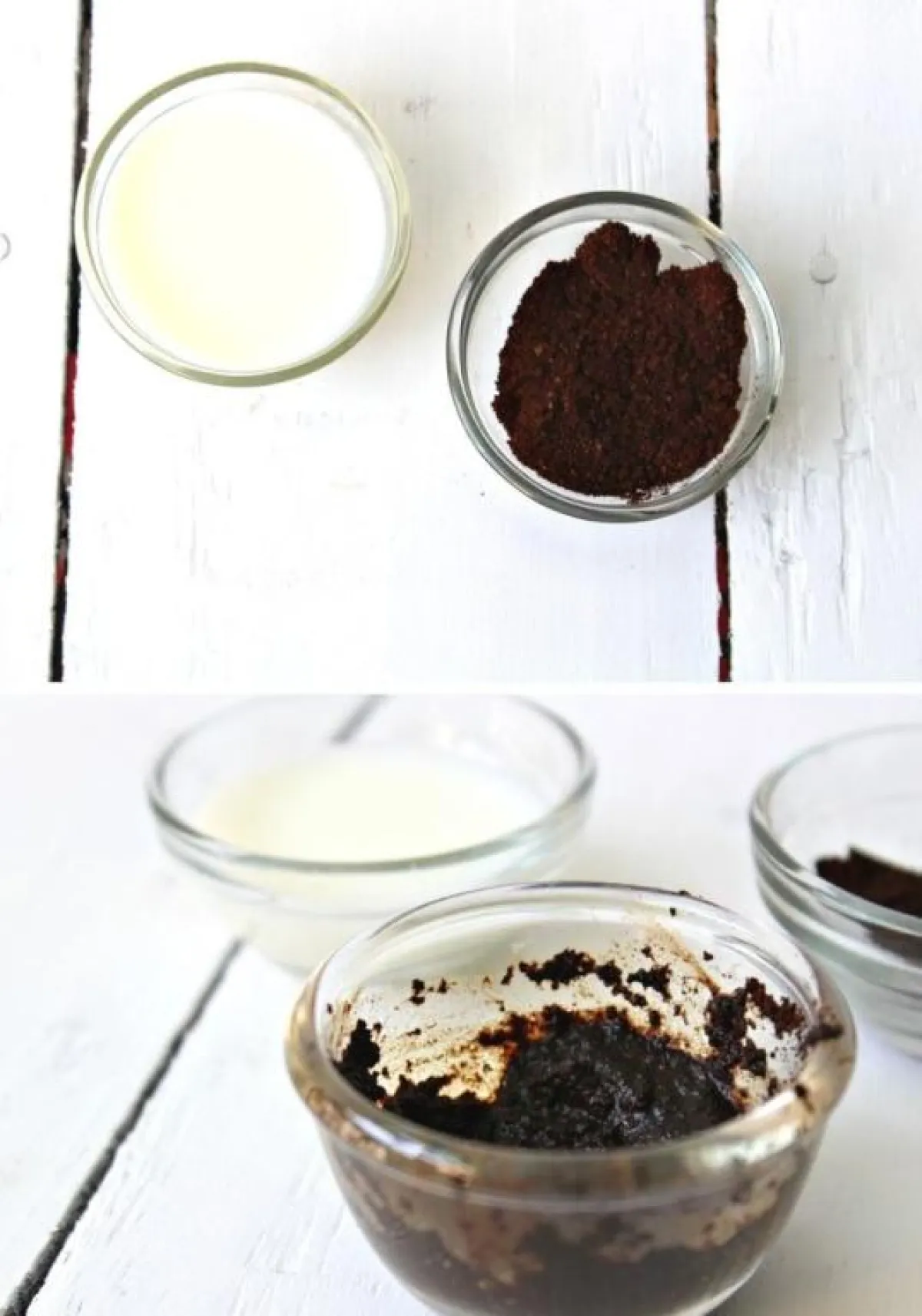 لتحضير ماسك القهوة واللبن، امزجي في وعاء نظيف ملعقتين من القهوة مع بضع ملاعق من اللبن الكامل الدسم. يجب ان تحصلي على ما يشبه مزيجا متماسكا وليس سائلا جدا.