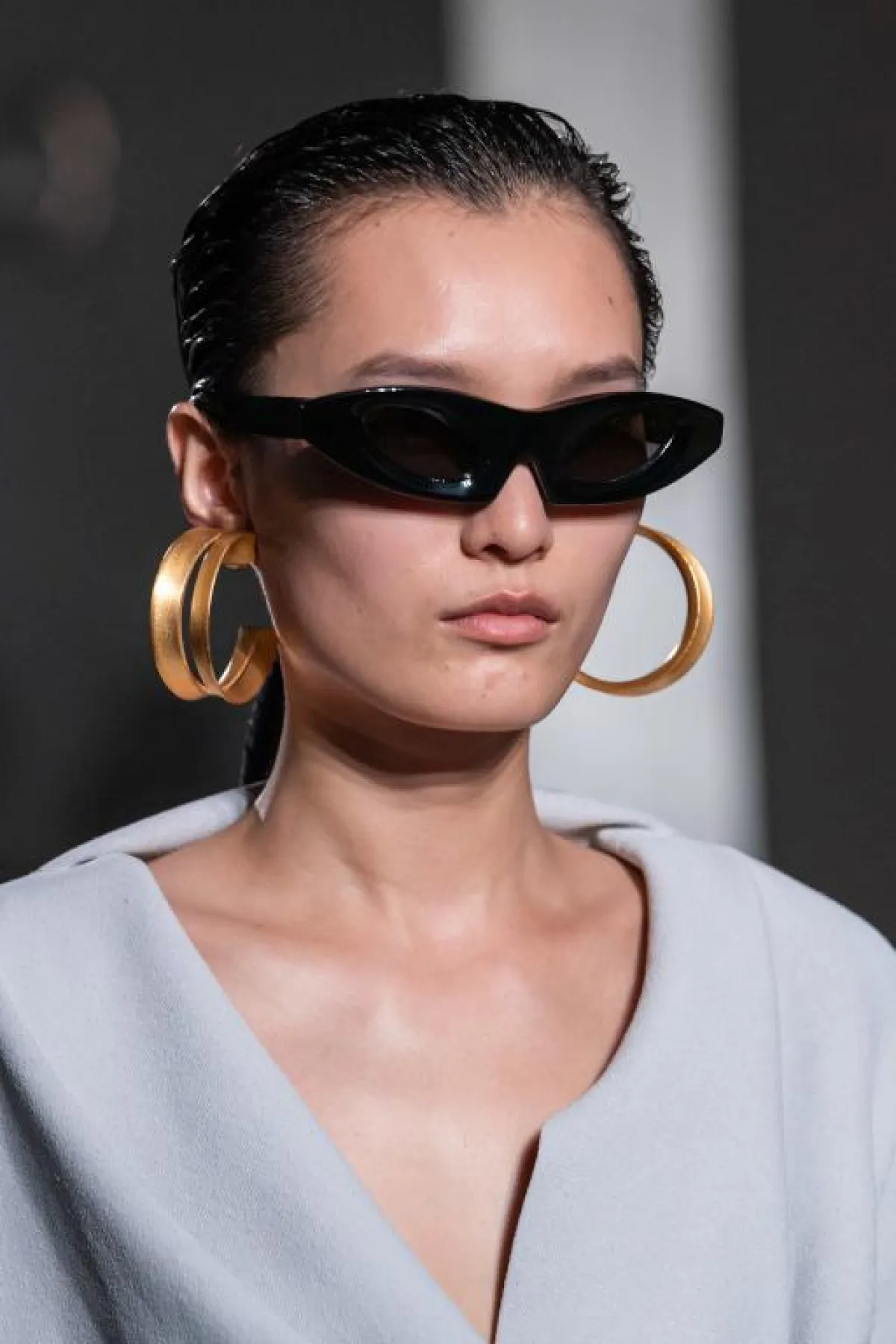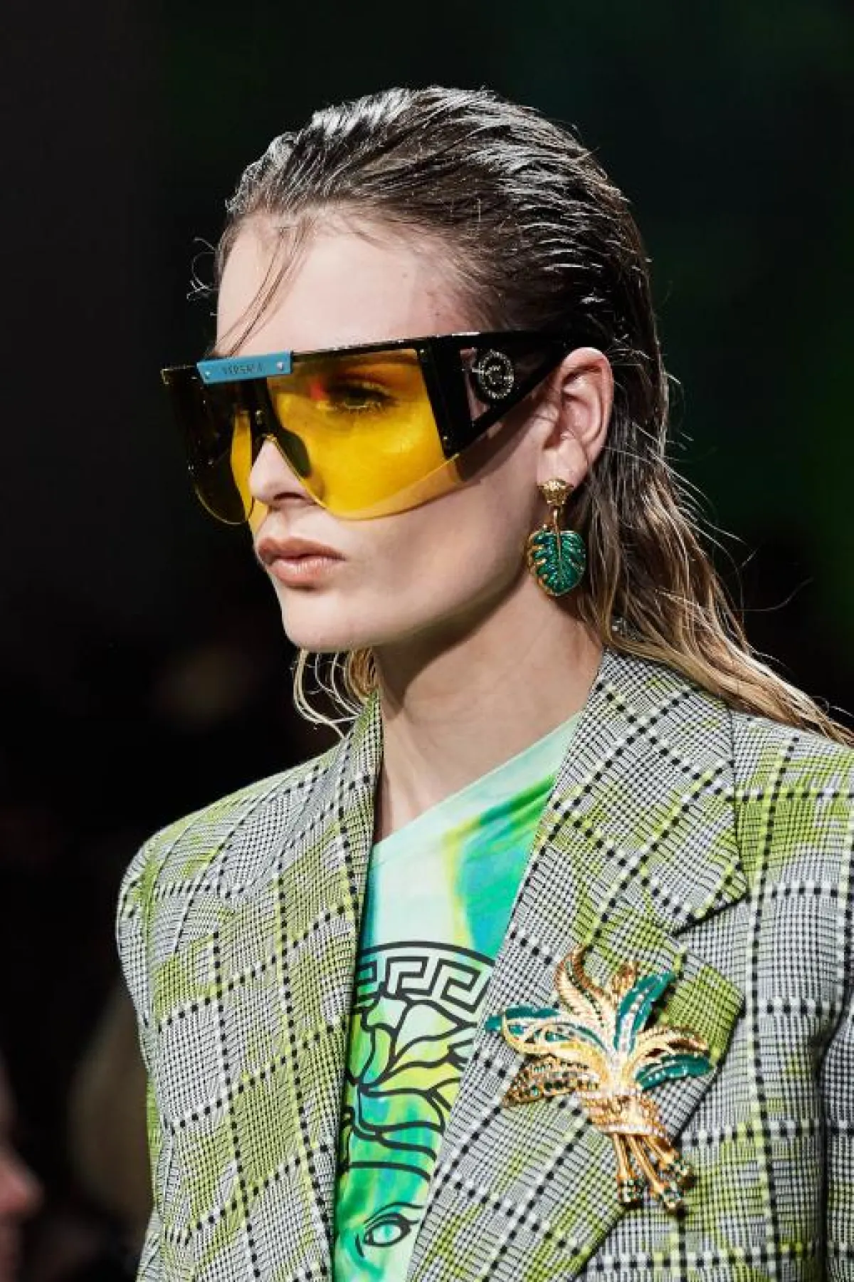 مجددًا نجحت النظارات الشمسية بموديل عين القطة Cat eye في حجز مكان بارز لها على منصات العروض، قدمت ماركة مارك جاكوبس Marc Jacbos نظارة مميزة بحجمها الكبيرة، وستايل العدسات المزدوجة ذات الألوان الربيعية المبهجة، نرشح هذا الموديل الفريد لصاحبات الوجه على شكل المثلث الذي يتميز بالجبهة الصغيرة.