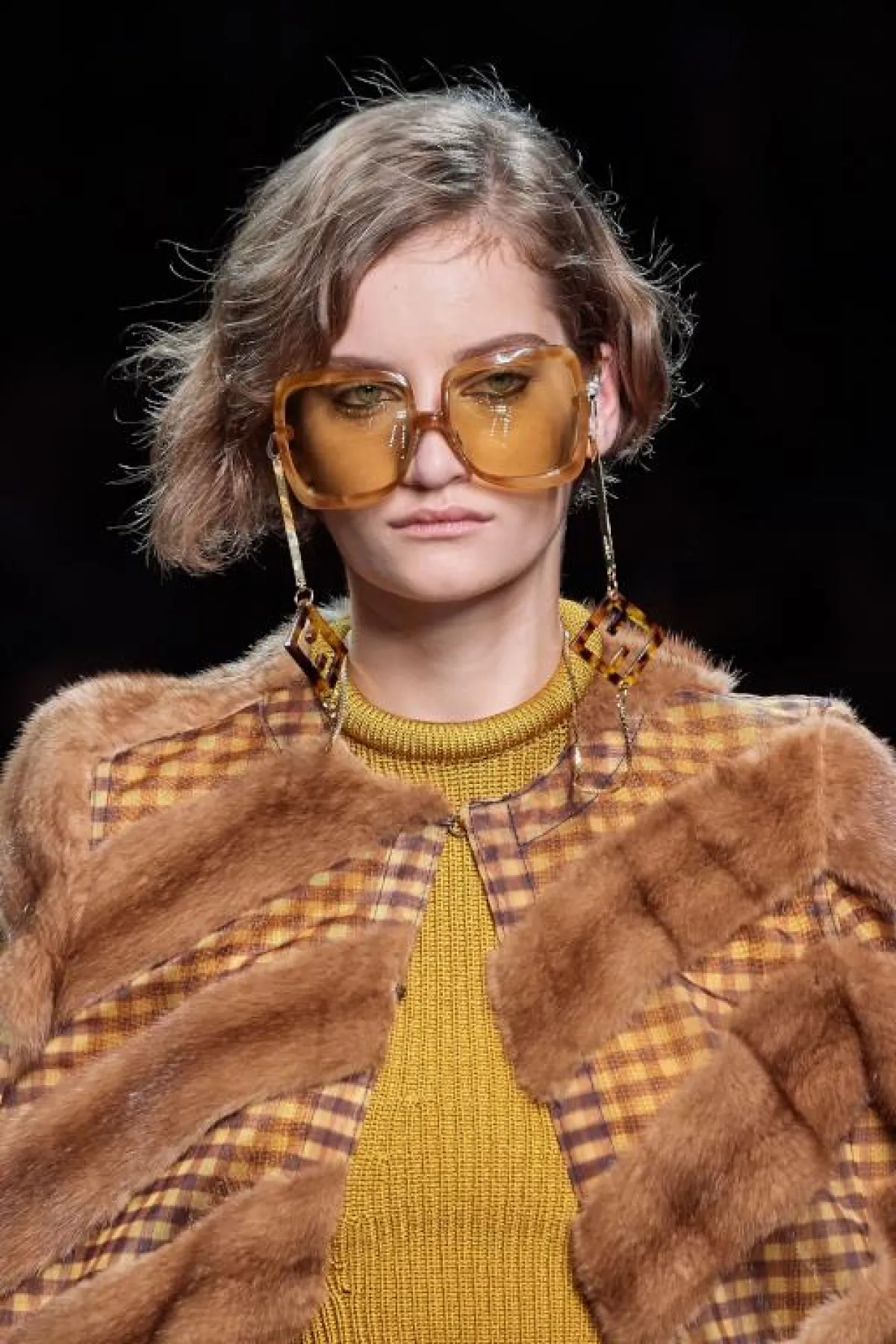 زينت النظارات الشمسية مربعة الشكل اطلالات عارضات فندي Fendi، وجورجيو أرماني Giorgio Armani، الجئي إلى هذه التصميمات اذا كنتِ تتمتعين بوجه على شكل القلب، فقط اِحرصي على اختيار النظارات المزودة بإطارات، والتي تساعد في تحديد شكل الوجه وتجمّل مظهر الخدين الممتلئين.