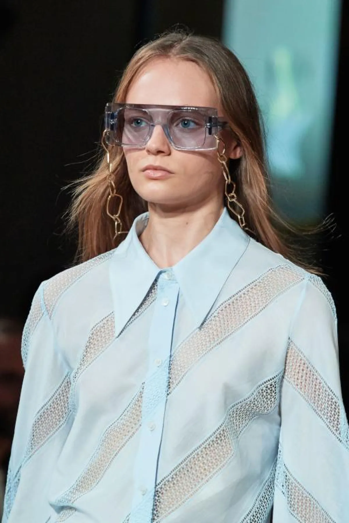 بخلاف النظارات الشمسية السوداء والبنية الداكنة، لاحظنا بزوغ نجم العدسات الملونة فاتحة اللون كما في الموديلات التي رصدناها لدى ستيلا مكارتني Stella McCartney ودولتشي آند غابانا Dolce & Gabbana، تناسب هذه الصيحة صاحبات الوجه الصغير والرفيع لا سيما المحجبات منهنّ، حيث تعكس مساحة الجلد المكشوف وبالتالي لا تطغى على الوجه.