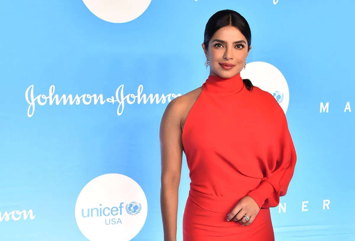في حفل خيري في نيويورك تألقت بريانكا شوبرا Priyanka Chopra في فستان باللون الأحمر الحيوي، بتصميم ناعم ناسبها كثيرًا، بقصة الكم الواحدة وياقة عالية، وتنورته منسدلة مع ذيل طويل من الخلف.
