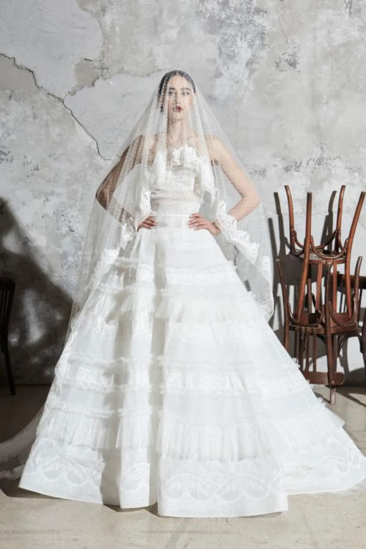 فستان زفاف منفوش مع الموديل الطبقي من Zuhair Murad