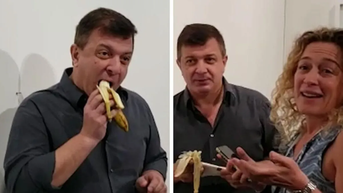 في الساعة الثانية إلا ربع من ظهر يوم السبت الفائت 7 كانون الأول/ديسمبر، صدم الفنان الاستعراضي الأمريكي ديفيد داتونا، العالم كله بأمر مُفاجئ ولا يمكن تصديقه. حيث قام داتونا خلال تواجده في معرض آرت بازل، بانتزاع الموزة عن الحائط، وبدأ بأكل العمل الفني البالغ ثمنه 120 ألف دولار أمام عدسات الصحفيين وأعين الجمهور الحاضر في المعرض، وذلك بحجة أنه كان جائعاً حينها. وقبل أن يصل رجال الشرطة إلى المعرض للقبض عليه، هرب الفنان الإستعراضي الأمريكي مُسرعاً واختفى من المكان.