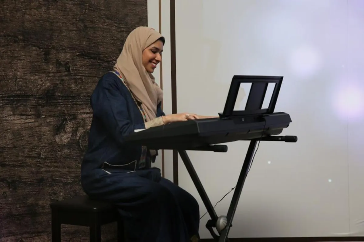 بمهارة وبمعزوفات موسيقية كورية وعربية تمكنت روان الدريس، البالغة من العمر ٢٥ سنة (موظفة)، من تتويج جهودها ودراستها الذاتية التي بدأتها في الصف الثاني ثانوي، بالعزف على البيانو بمهارة عالية.