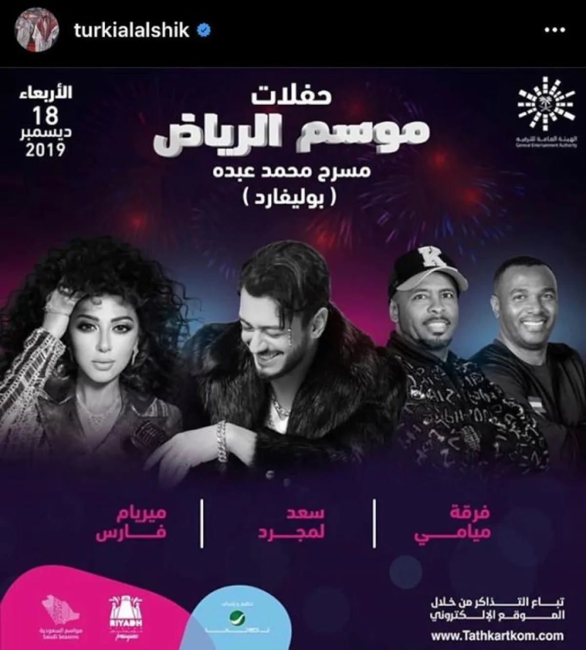 يذكر أن المستشار تركي آل الشيخ، رئيس هيئة الترفيه السعودية، أعلن قبل أيام عن اتفاق مع سعد المجرد على إحياء أولى حفلاته بالمملكة العربية السعودية، ضمن فعاليات "موسم الرياض" في 18 ديسمبر الجاري، بمشاركة الفنانة اللبنانية مريام فارس وفريق ميامي الكويتي.