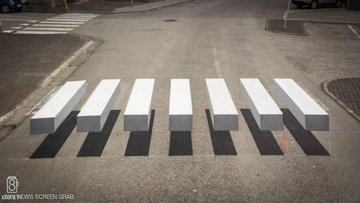 ويبدو الخداع البصري واضحاً من على مسافة قصيرة لكن بالنسبة لسائقي السيارات المتجهين نحو الممر يبدو الأمر كما لو أن المشاة يحلقون فوق الألواح البيضاء، وهذا يدفعهم لإبطاء السرعة لدرجة تصل إلى حد التوقف.