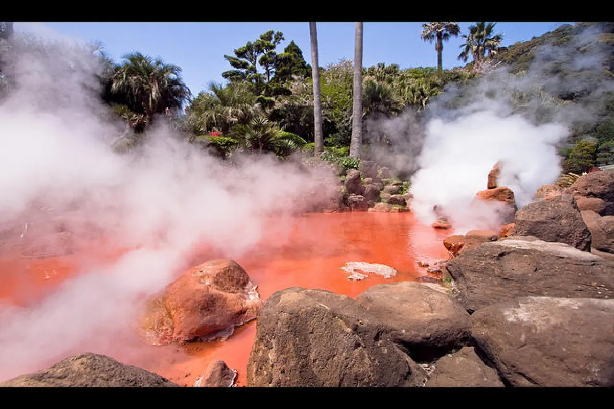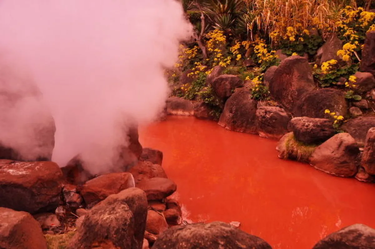 مدينة الجحيم في اليابان بيبو التي بها حوالي670 ينبوعاً ساخناً أهمها ثمانية ينابيع التي تسمى باليابانية الاحتراق بالجحيم، أما الأكثر إثارة في هذه الينابيع الثمانية فهو ينبوع بركة الدم الساخن.