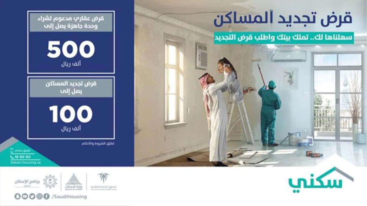 وأبان وزير الإسكان، أنه يتم من خلال مبادرة "تجديد المساكن" صرف جزء من أرباح القرض الأساسي يصل إلى 100 ألف ريال تقدم لفئة محددة من المستفيدين ممن فضلوا شراء وحدة سكنية جاهزة يزيد عمرها عن 15 عامًا.