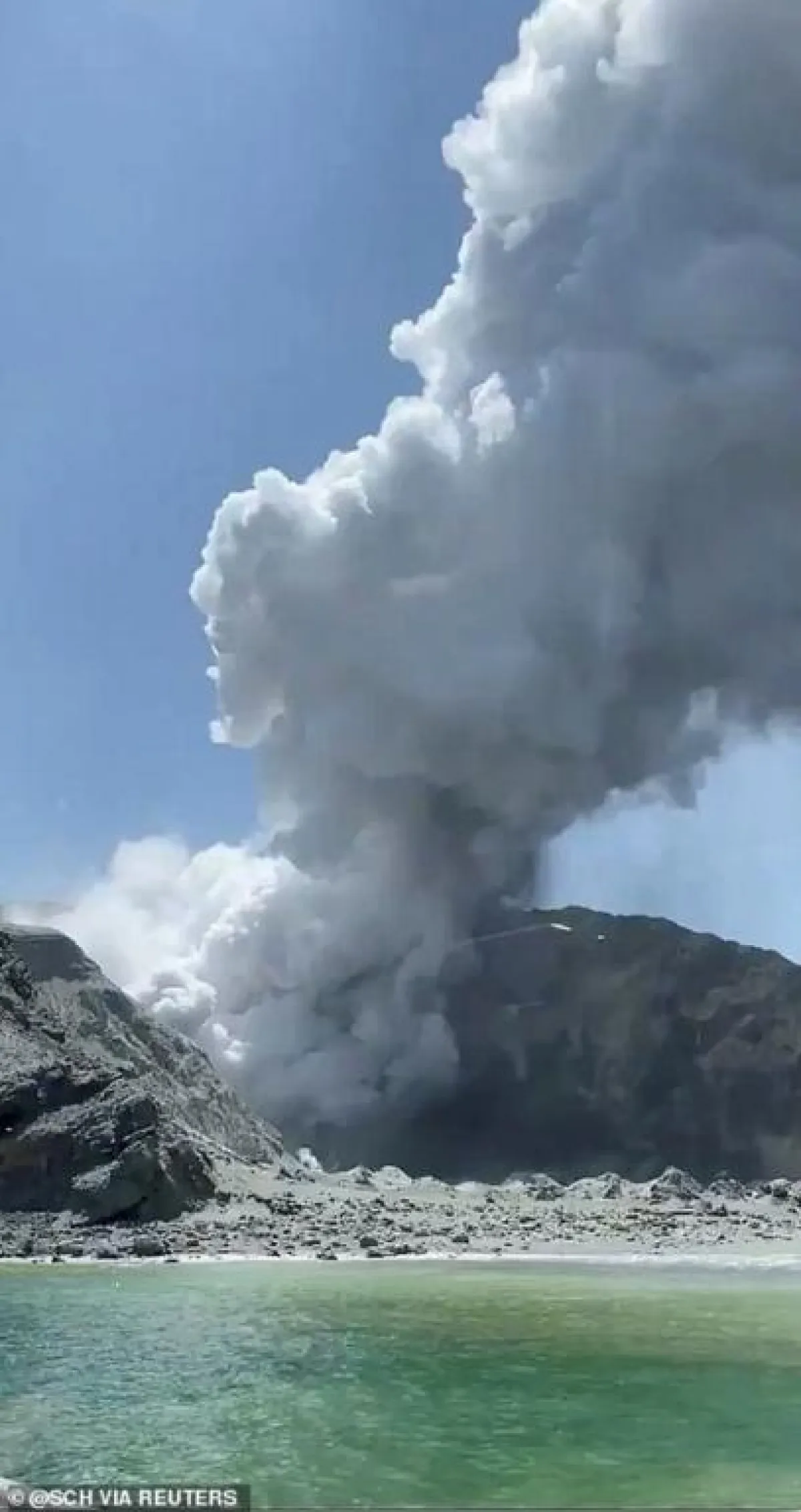وتُظهر كاميرا متصلة بالإنترنت وُضعت عند بركان وايت أيلاند في نيوزيلندا أنّ مجموعة واحدة على الأقل من السياح كانت داخل فوهة البركان قبل دقائق من ثورانه وتغطيته للمنطقة بسحابة ضخمة من الرماد.