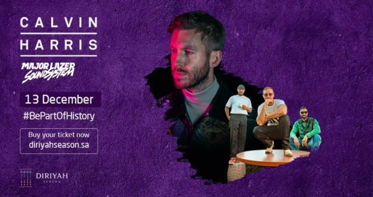 كشف حساب موسم الدرعية في موقع تويتر عن إقامة حفلة موسيقية عالمية ضمن فعالياته الجارية حالياً، يحييها كلٌّ من كالفين هاريس، وفرقة ماجور ليزر، الجمعة المقبل 13 ديسمبر، في مهرجان الدرعية الموسيقي.