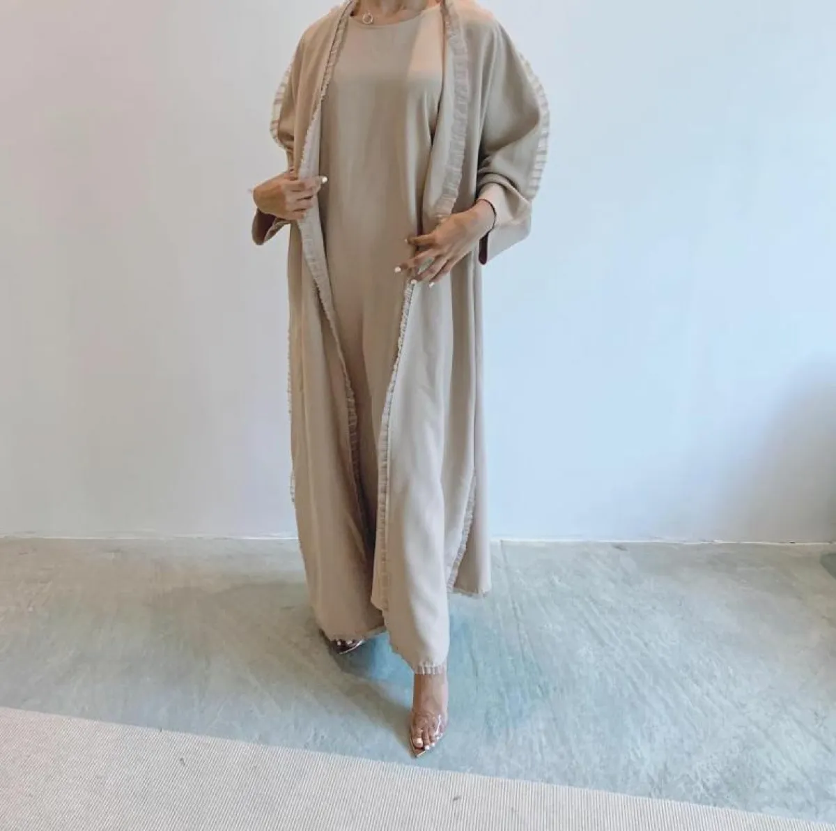 انتقلت موضة الكسرات من خشبات العروض العالمية إلى مجموعات عبايات 2019، اختاري واحد من تصاميم ماركة Nafs designs أو ماركة Clue اذا كنتِ ترغبين في إطالة قامتك، وننصحك بتنسيقهما مع حقيبة كتف متوسطة الحجم والطول وحذاء بيج فاتح Nude shoes.