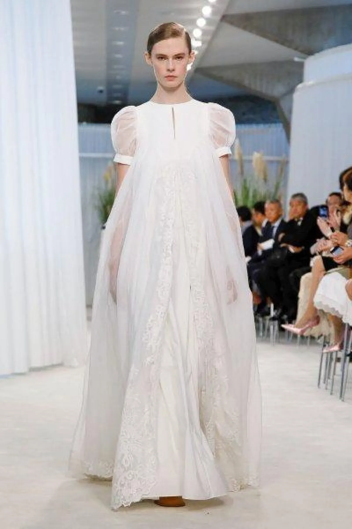 ومن عرض أزياء فالنتينو Valentino، اخترنا لكِ فساتين A Line عصرية بتصاميم محتشمة تناسب العروس المحجبة حيث الأكمام الطويلة والقصّة غير الكاشفة للجسم.