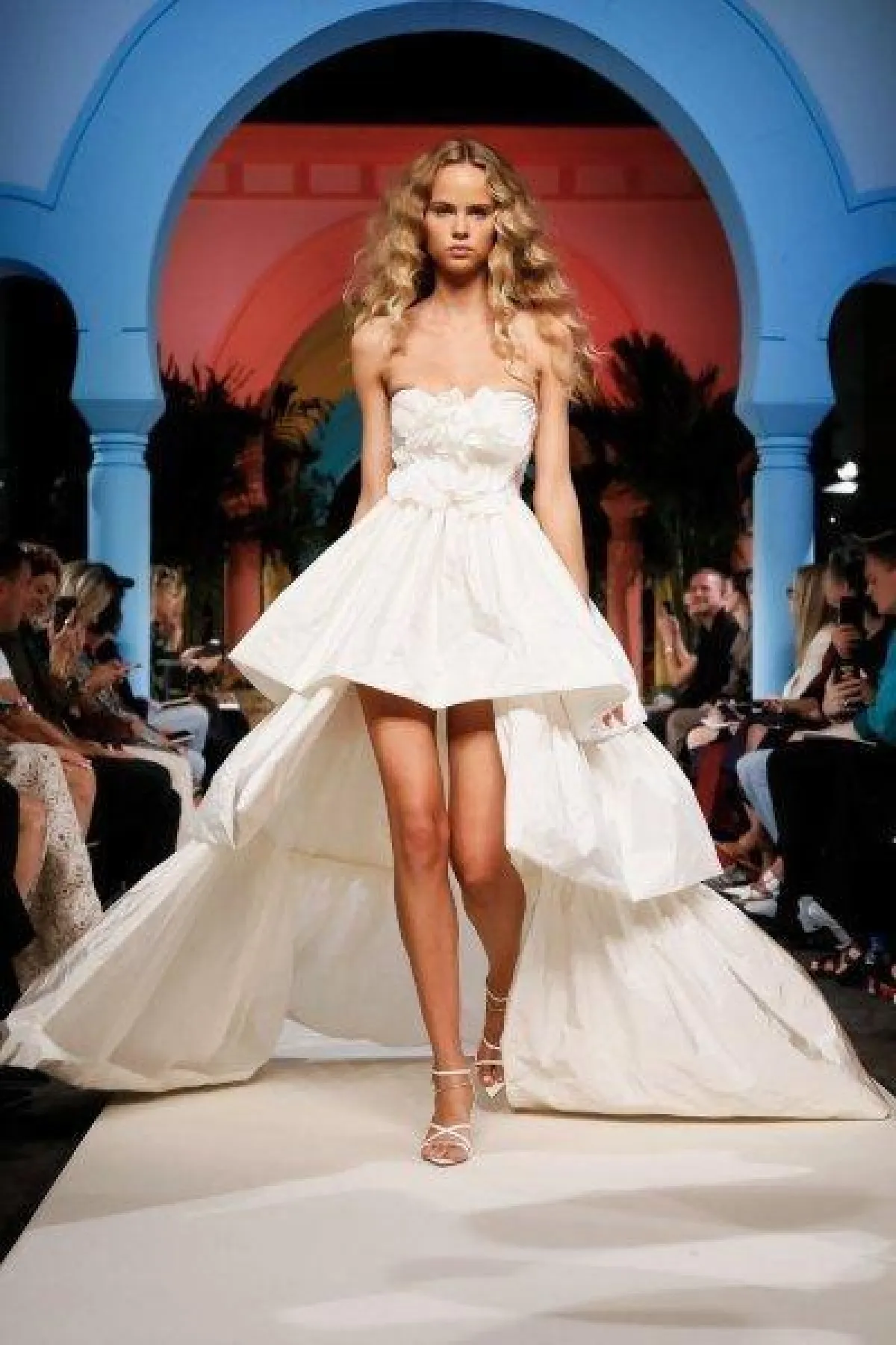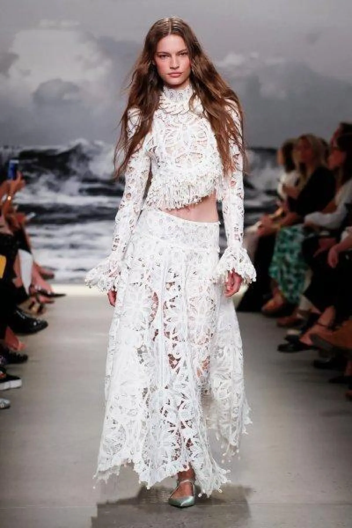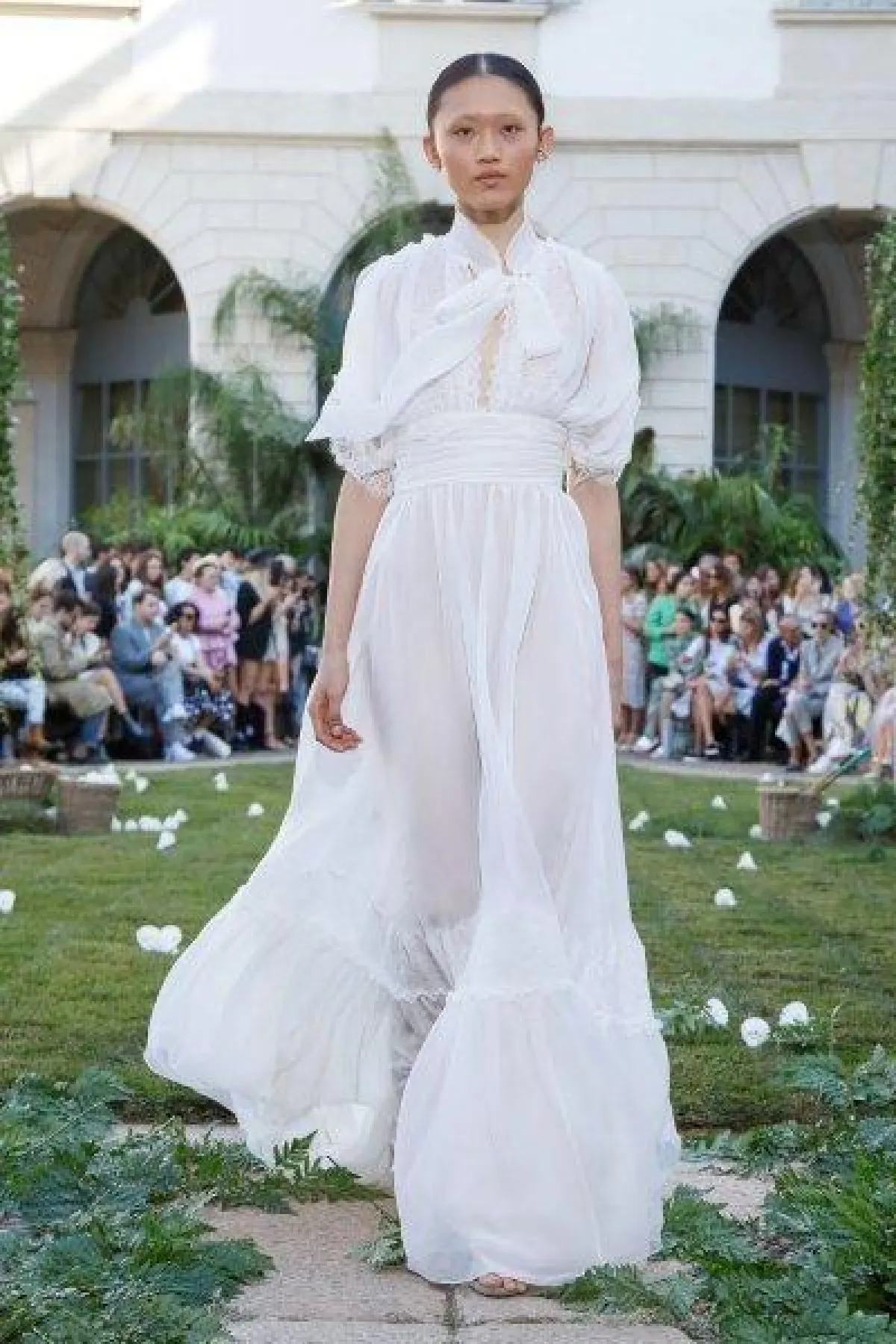 وقدمت ماركة Zimmermann فستان أبيض عصري لإطلالة جذابة وغير تقليدية، وهو بصيحة التوب القصير Crop Top مع أكمام طويلة بصيحة الجرس، وهو مثالي لحفل الزفاف على الشاطىء.