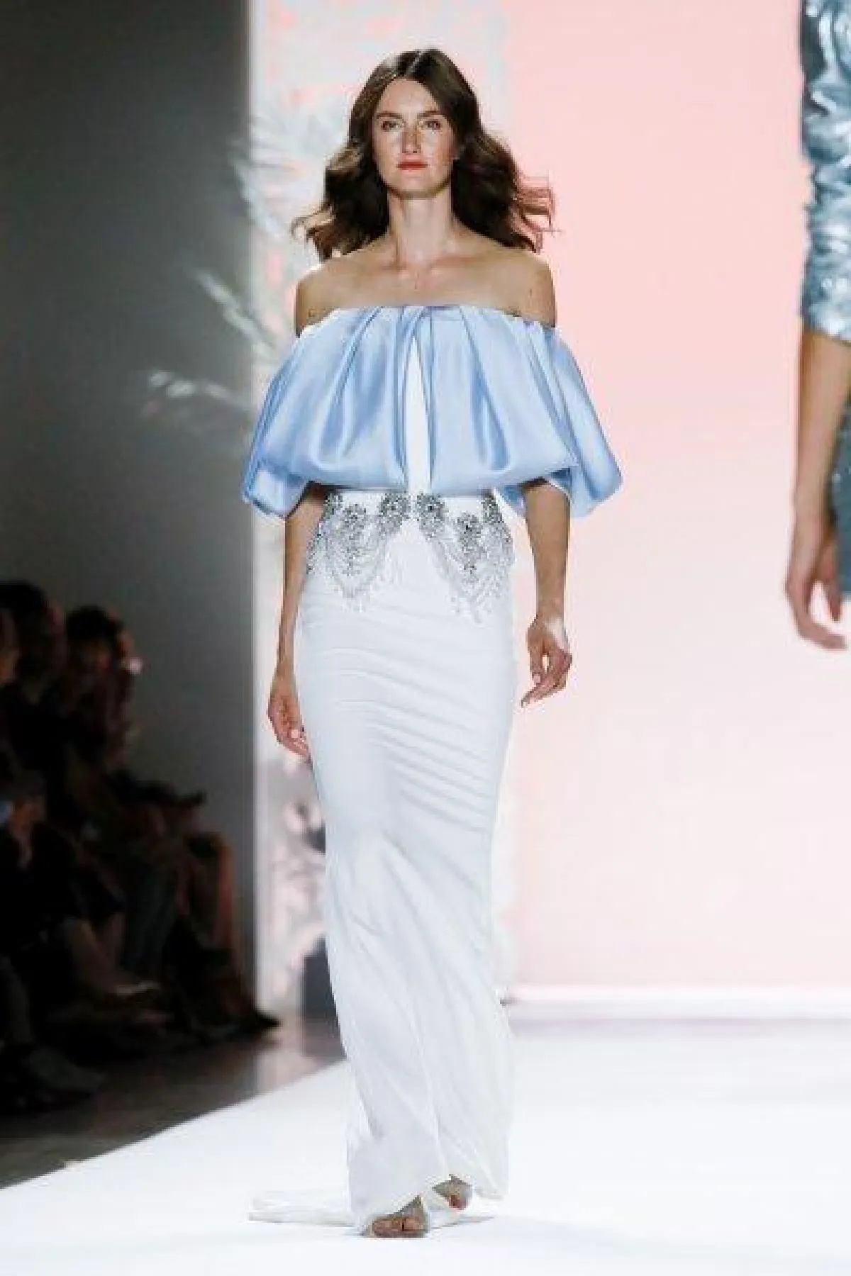 كما ظهرت مجموعة من تصاميم الفساتين العمودية في تشكيلة جيامباتيستا فاللي Giambattista Valli بالقصّة الأوف شولدر.