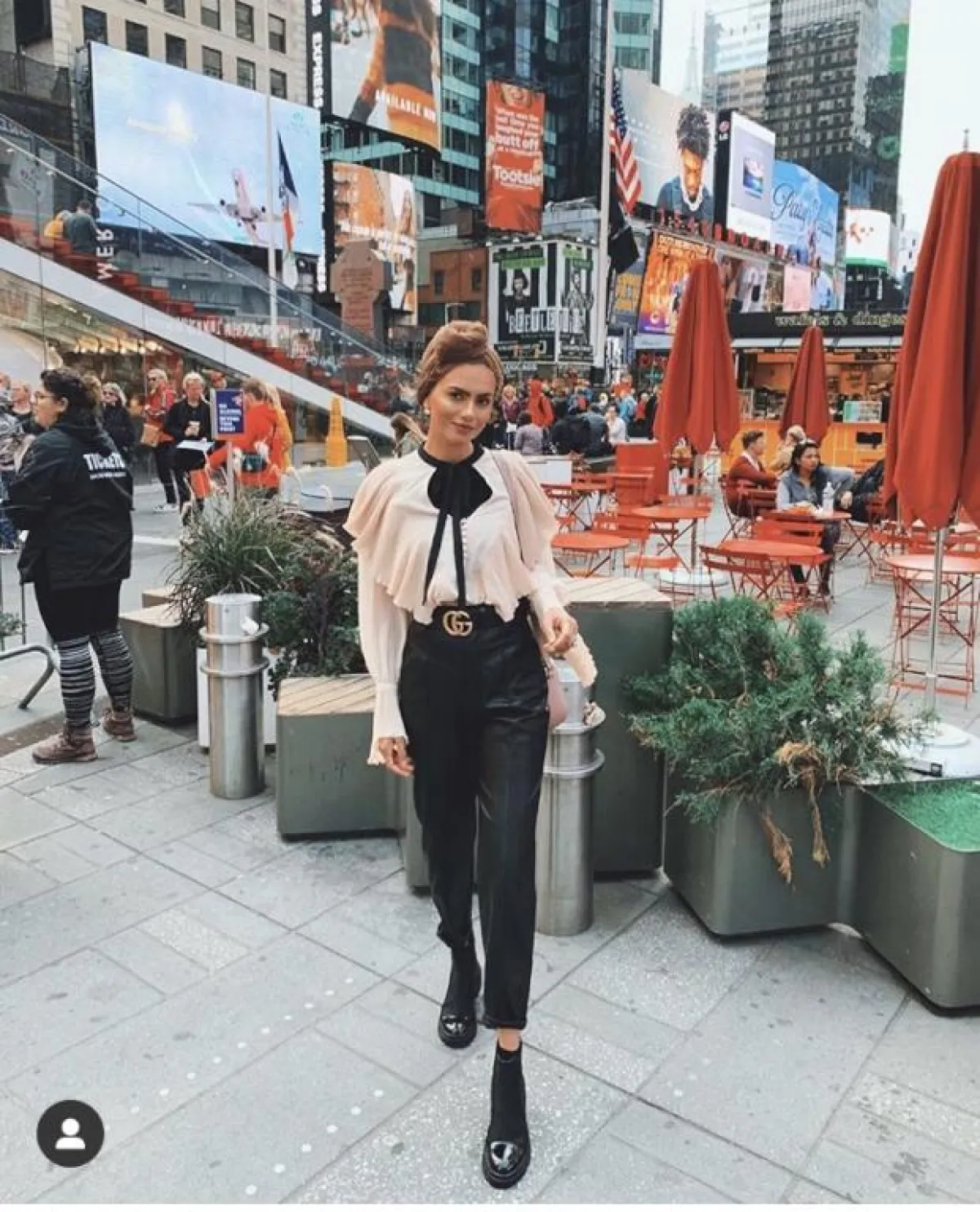 هذا اللوك يجمع بين النمط الكلاسيكي والكاجوال، مناسب لكِ بمشاويركِ النهاية، وسهرات المساء البسيطة، بخاصة وإن اعتمدتِه مع شنطة ميني بيد طويلة، أو شنطة الخصر.