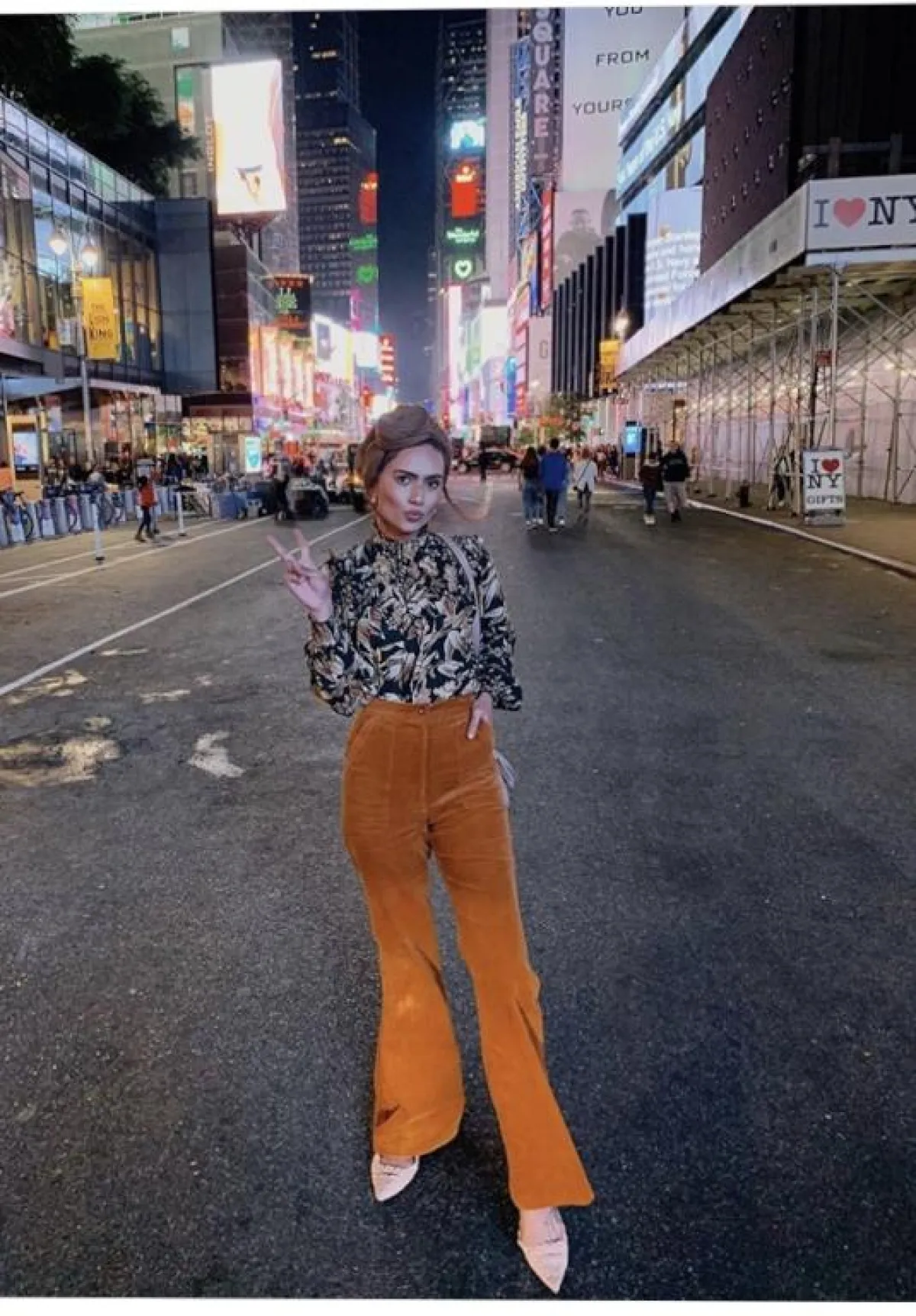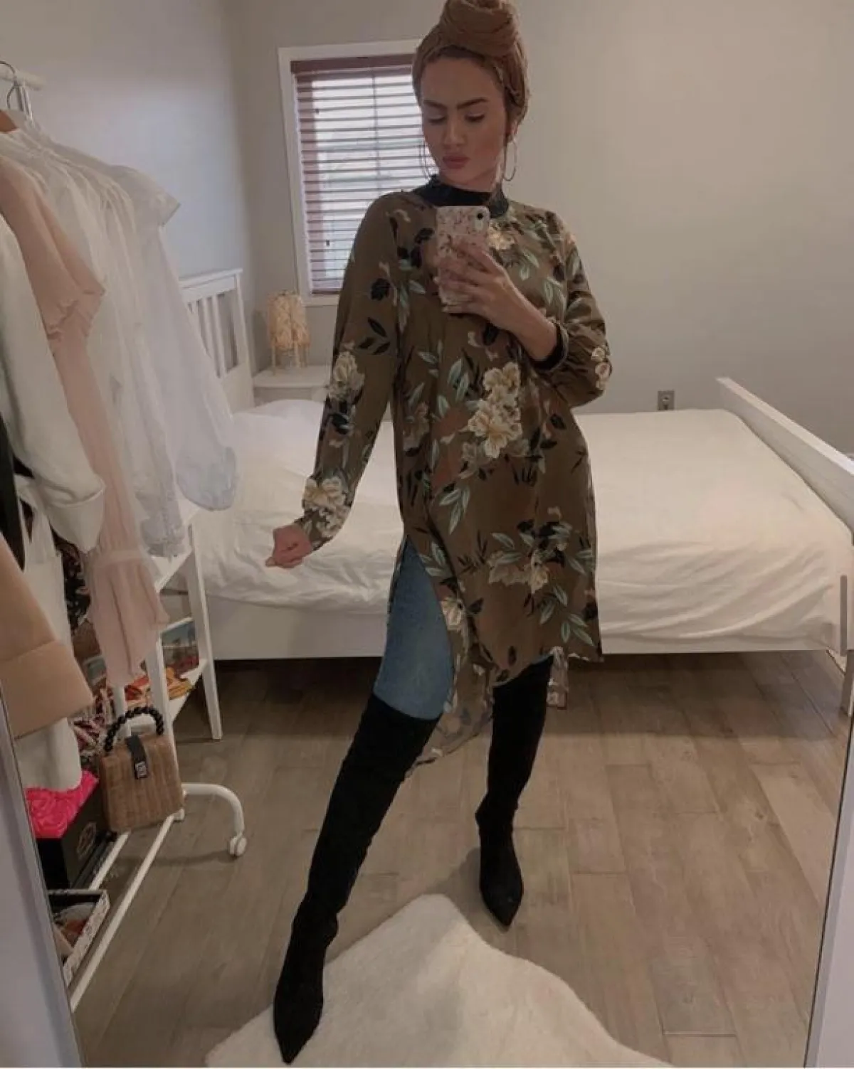 اختيار البلوزات الطويلة المطبعة بالورود مستوحاة من أجواء التسعينيات، كان خيارًا لافتًا من ظهيرة، بخاصة عندما نسقتها مع بوت الساق والبنطلون الجينز، لاطلالة خريفية من الطراز الأول.