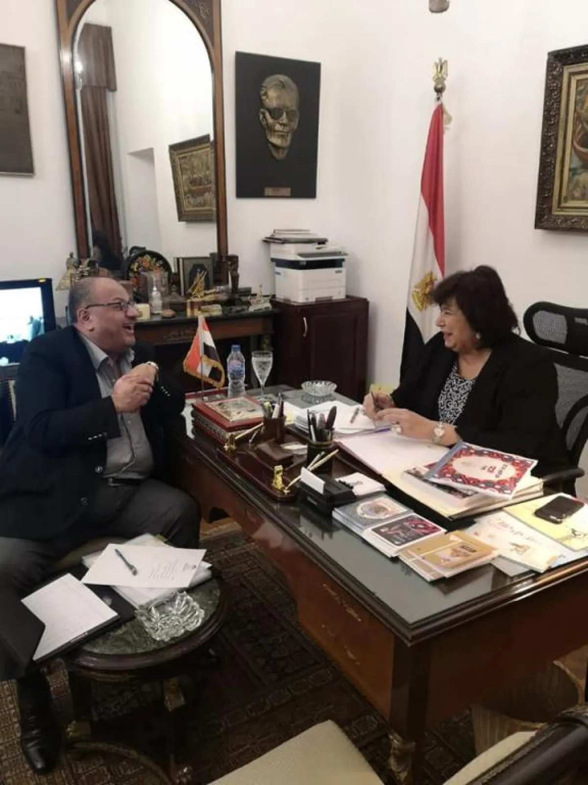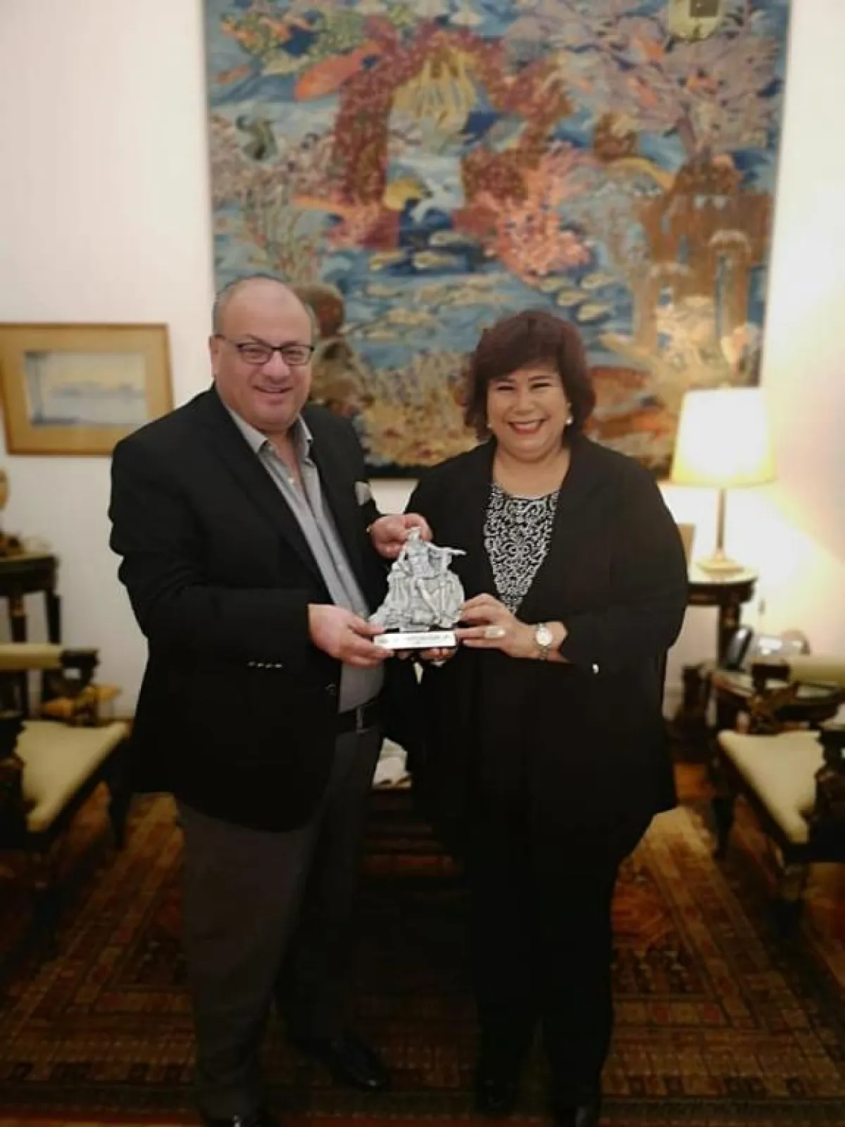 كرَّمت الدكتورة إيناس عبدالدايم وزيرة الثقافة المصرية المدير التنفيذي لمهرجان جرش، خلال لقائهما بالوزارة استكمالاً للترتيبات المتعلقة بفعاليات مهرجان جرش في دورته القادمة 35. كما تم مناقشة الإطار الإستراتيجي الجديد الهادف للتعاون المثمر مع وزارة الثقافة المصرية، والذي من شأنه إبراز القيمة التاريخية للحركة الثقافية التي تسعى إدارة المهرجان إلى إبرازها في كافة الفعاليات، وشدد سماوي خلال اللقاء على الدور الثقافي الذي تضطلع به البلدان وأهمية تطوير هذا الدور وإبرازه كقيمة تاريخية مشتركة بين الأردن وجمهورية مصر العربية.