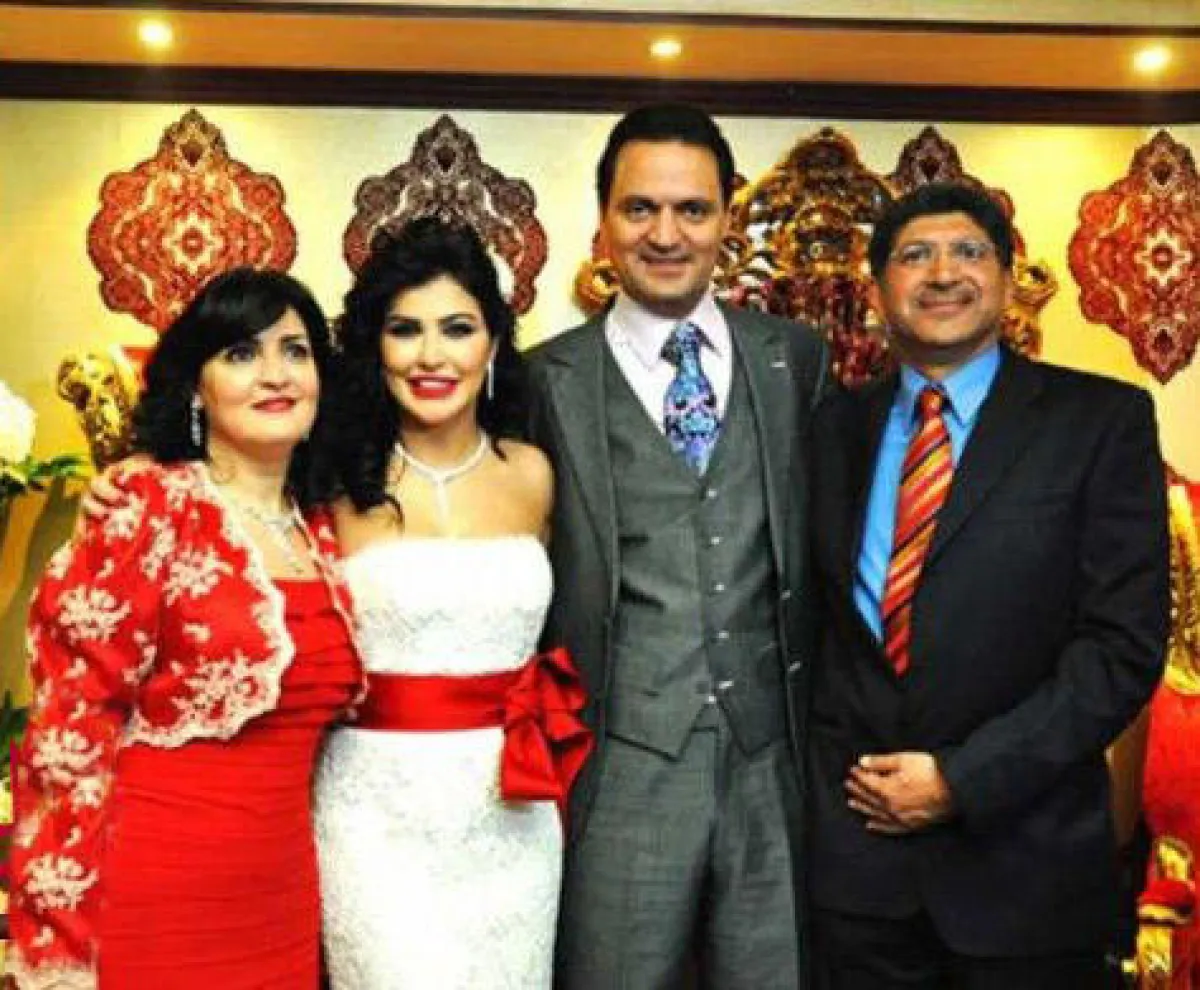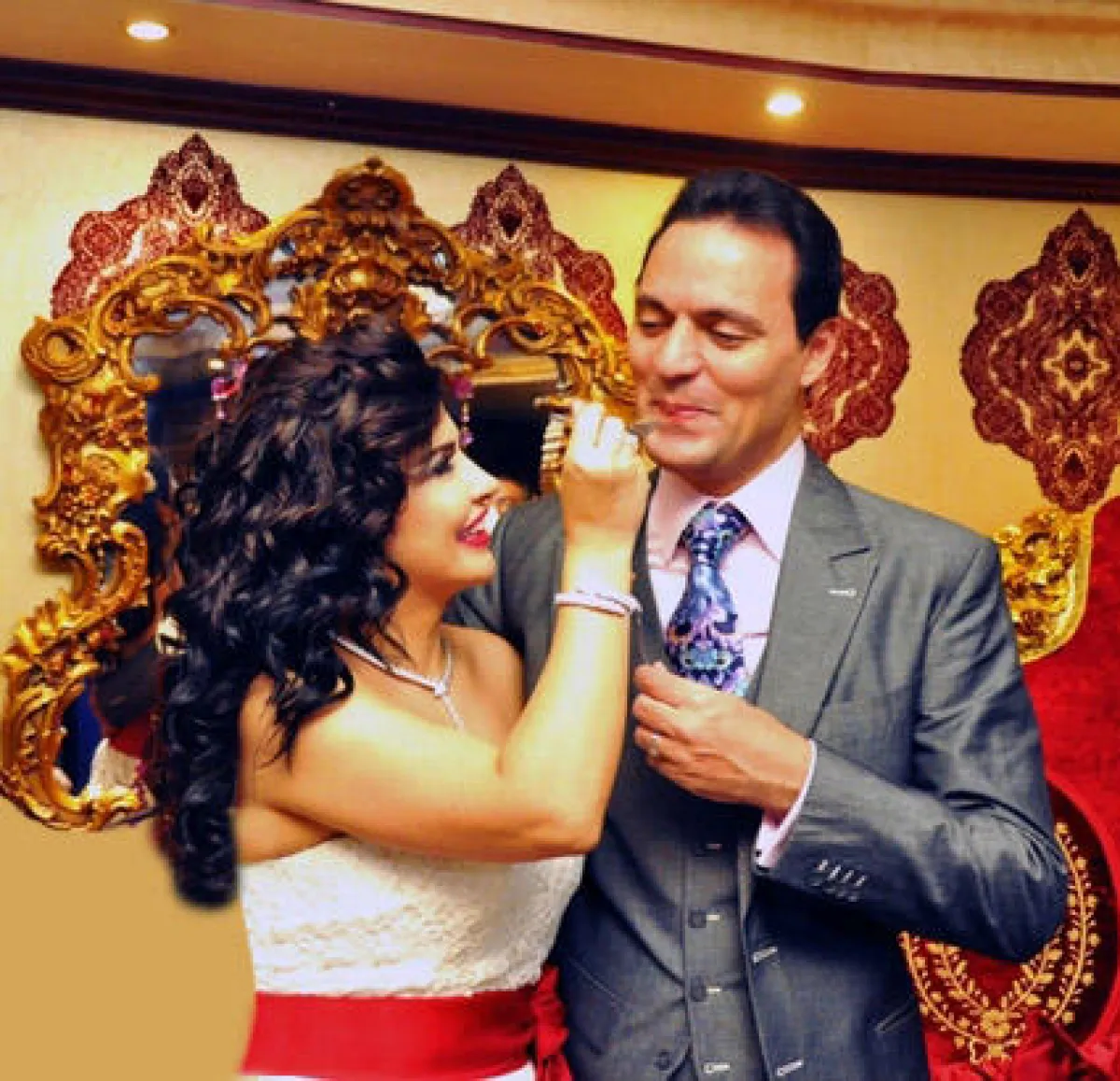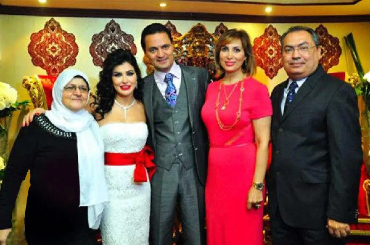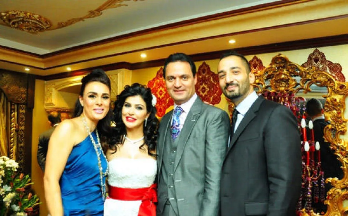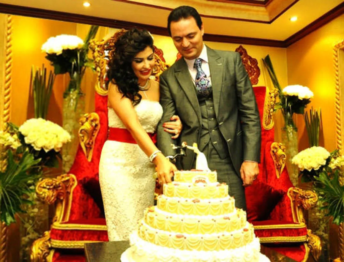 وتمّ نشر العديد من الصور التي تجمع العروسين بأصدقائهما وبالأهل، حيث تألقت الممثلة السورية بفستان أبيض، زينّته بحزام أحمر وتسريحة بسيطة. وأقيمت حفلة عقد القران بفيللا مراد الخاصّة، الواقعة في منطقة العريش المصرية؛ وذلك قبل أن يُقيم العروسان حفلة زفاف ضخمة تضمّ الفنانين والأصدقاء.