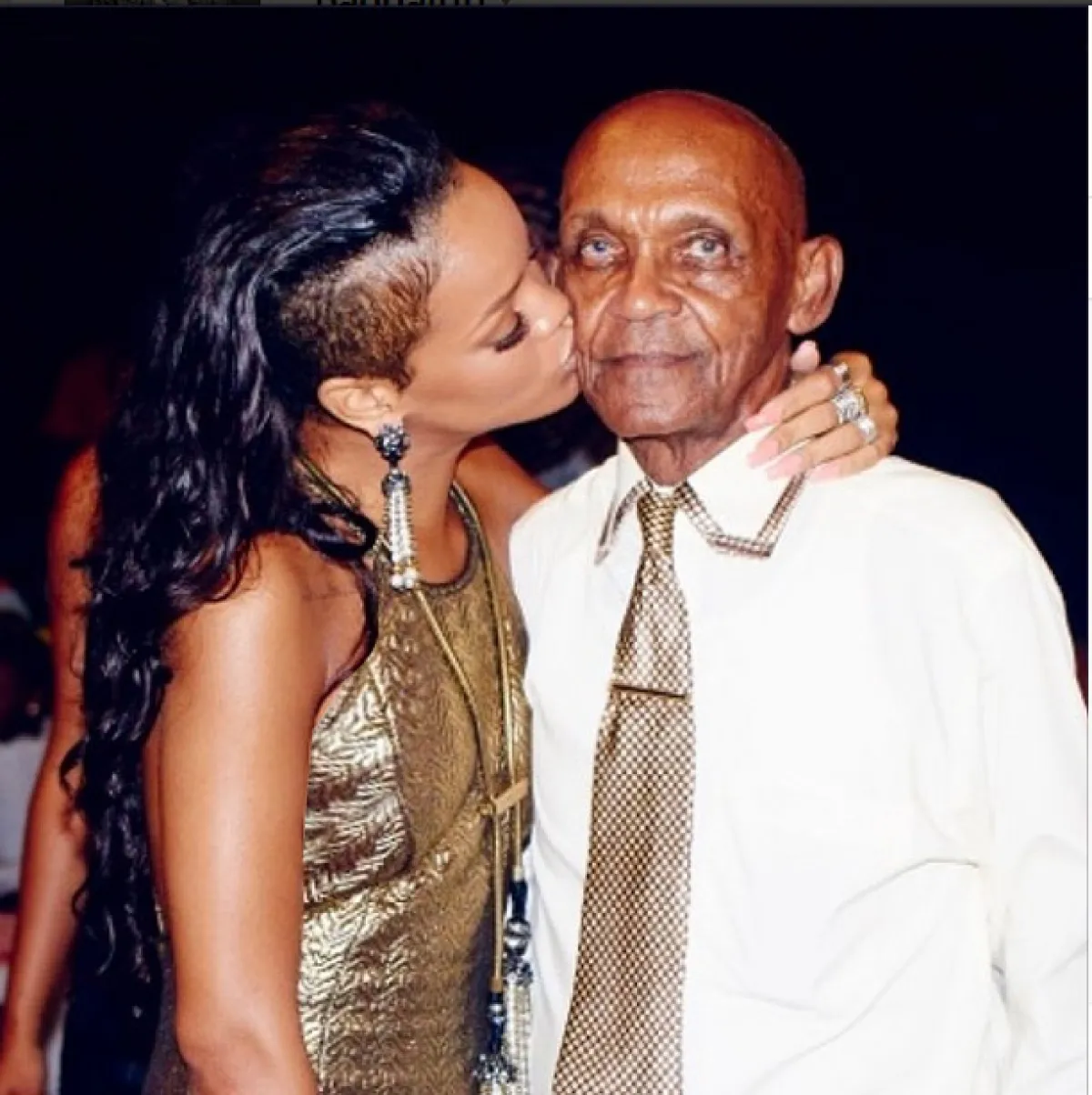 Rihanna البالغة من العمر 25 عاماً وجدت وقتاً في برنامجها المزدحم لتحتفل مع جدها، الذي تحبّه كثيراً. وقد أمضت الليلة تراقصه، متألقة بفستان ذهبيّ، نسّقت لونه مع ربطة عنق جدها العجوز.
