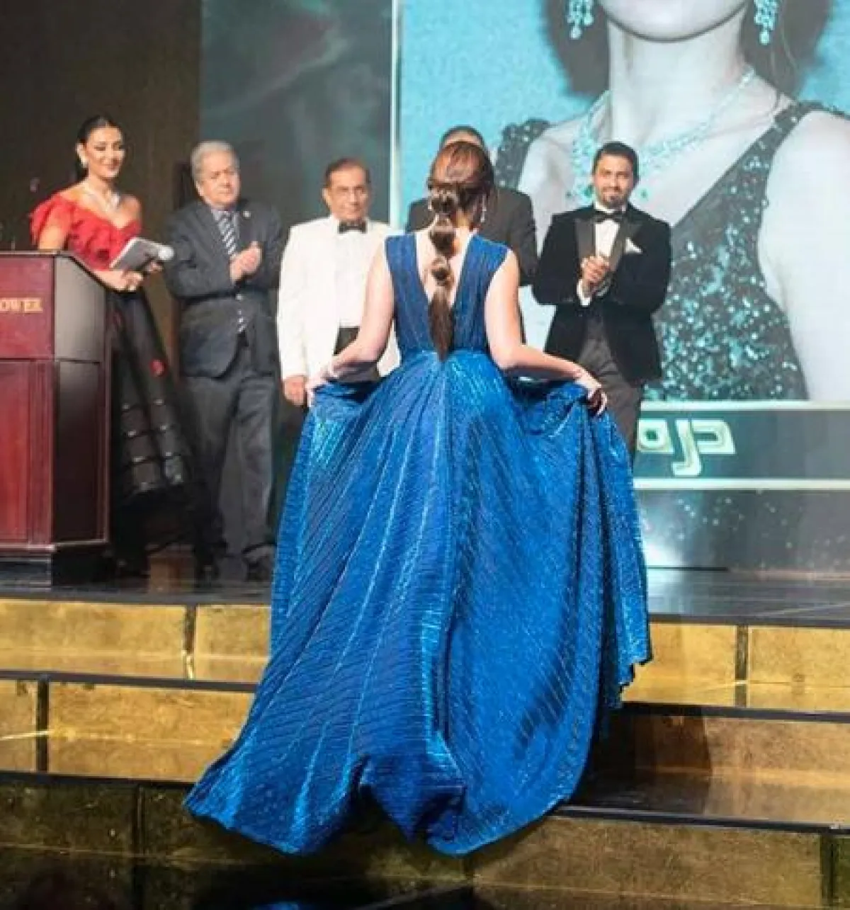 درة زروق في فستان أزرق من ليث معلوف: