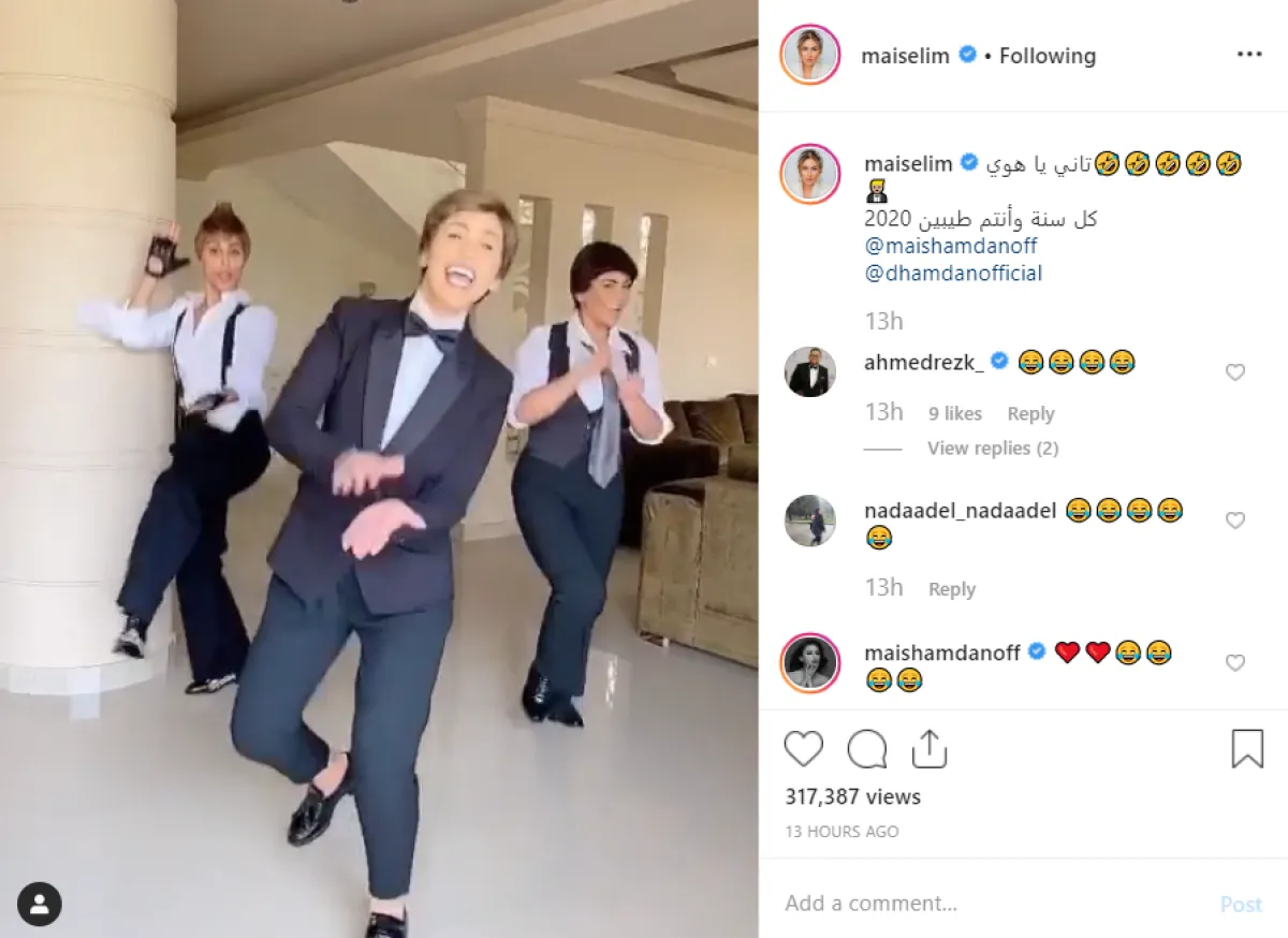 شاركت الفنانة مي سليم، متابعيها عبر حسابها الشخصي بموقع إنستقرام مقطع فيديو تم تصويره حديثا وهي ترقص مع شقيقتيها ميس ودانا حمدان، على أغنية "تاني يا هوا" للمطرب محمد محيي، وارتدين جميعا بدل رجالي مع باروكة شعر رجالي، وهو ما دفع النجم أمير كرارة لتوجيه النصيحة لمي وشقيقتيها بزيارة طبيب الأمراض النفسية الشهير جمال أبو العزايم.