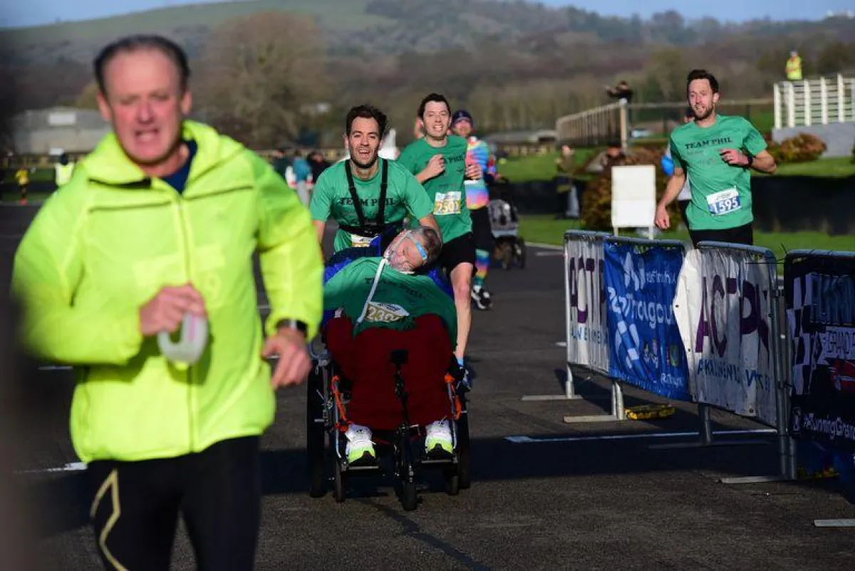 وبحسب موقع «runners world» كان «جرين» يدفع «فيل روسال»، وهو مدرس سابق من أوروبنجتون ومصاب بمرض عصبي حركي – عبارة عن مجموعة من الأمراض التنكسية التي يجمعها تضرر خلية العصب الحركي في الدماغ، والحبل الشوكي وفي المسالك المسؤولة عن انتقال الإشارات العصبية بينهما.
