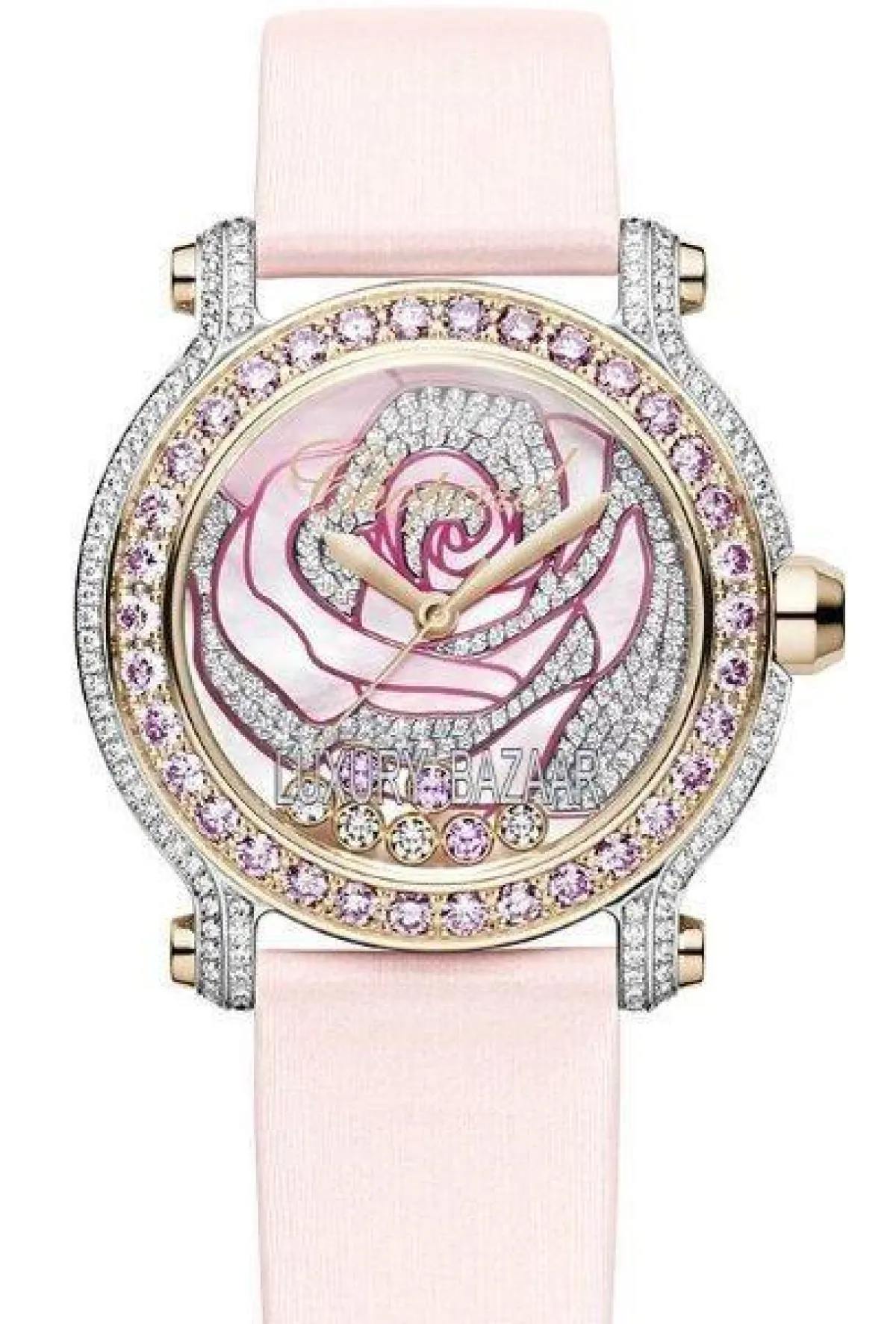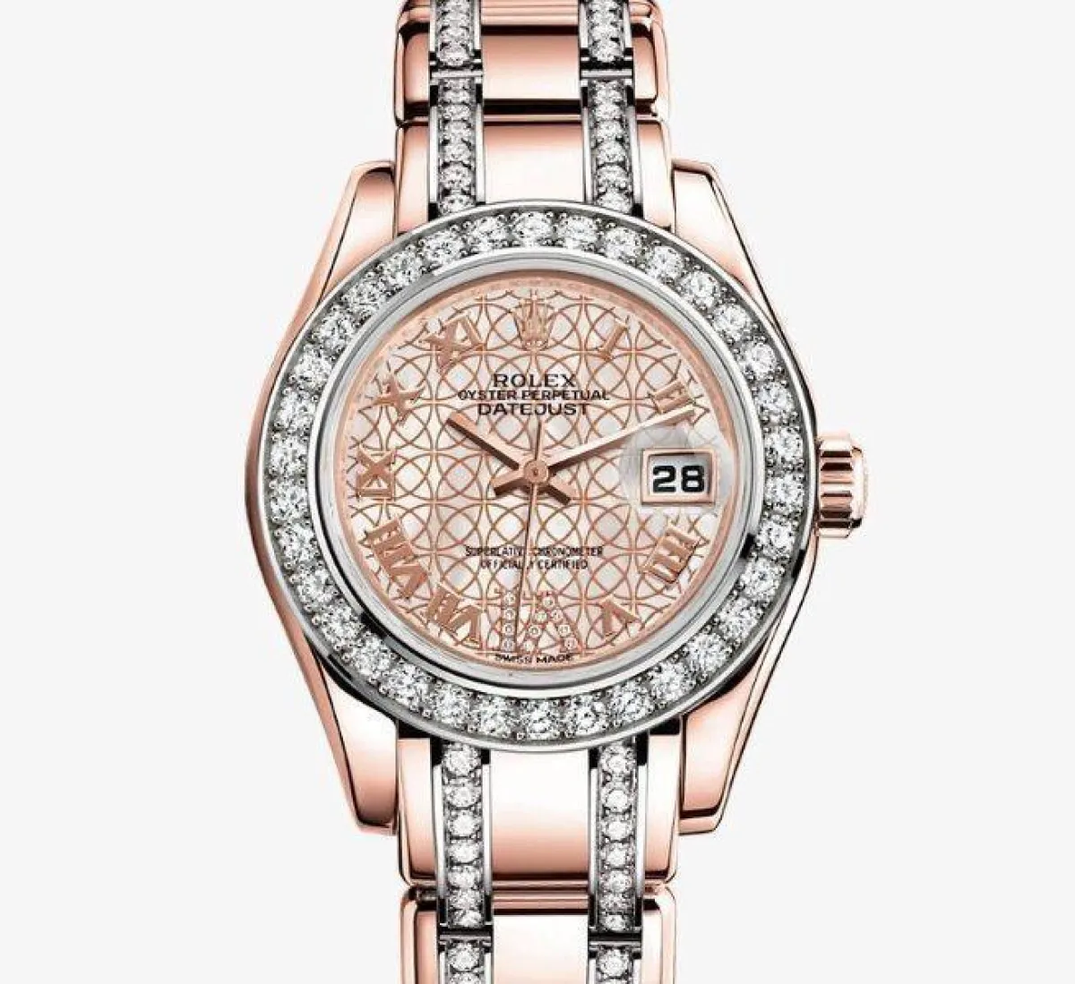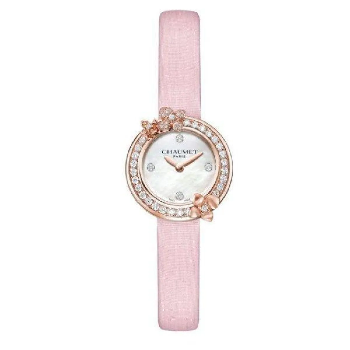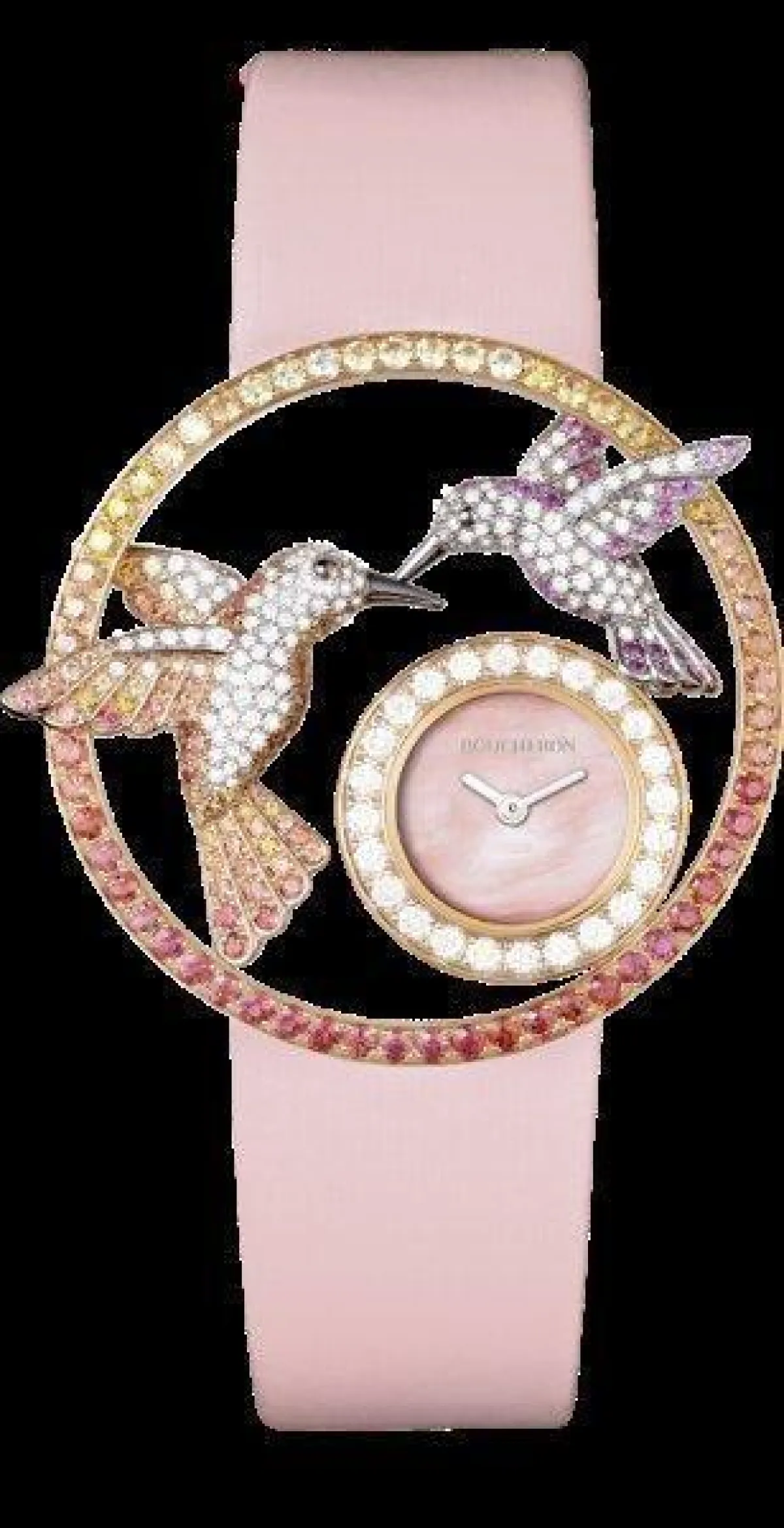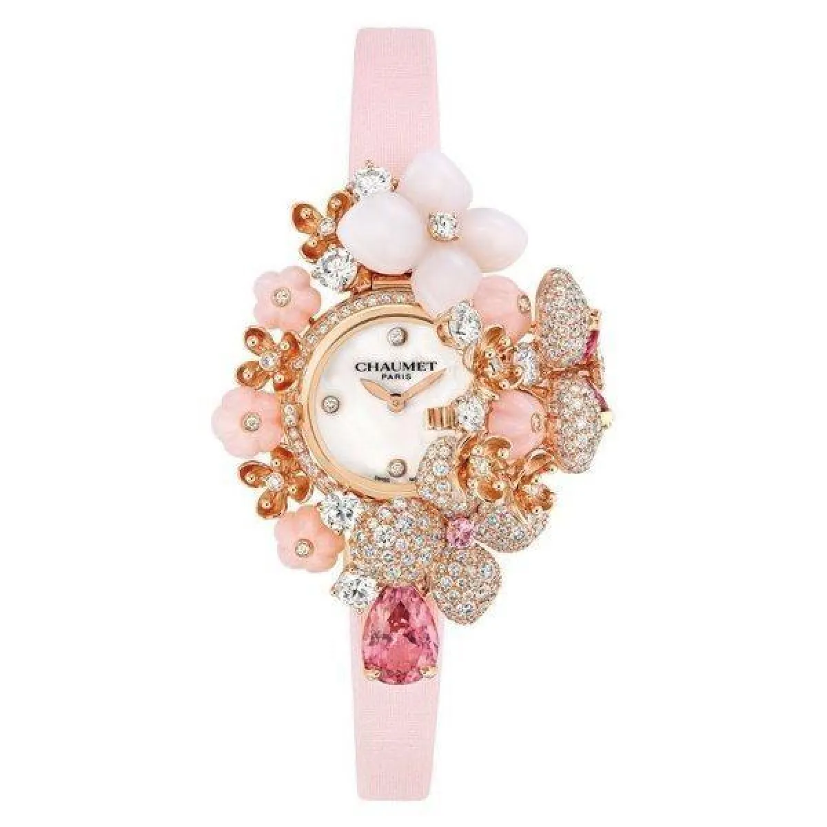 كما برزت الساعات المصنوعة من الذهب الوردي مع فصوص الألماس الوردية لمزيد من السحر والرومانسية، مثل ساعات فان كليف آند آربلز Van Cleef and Arpels.